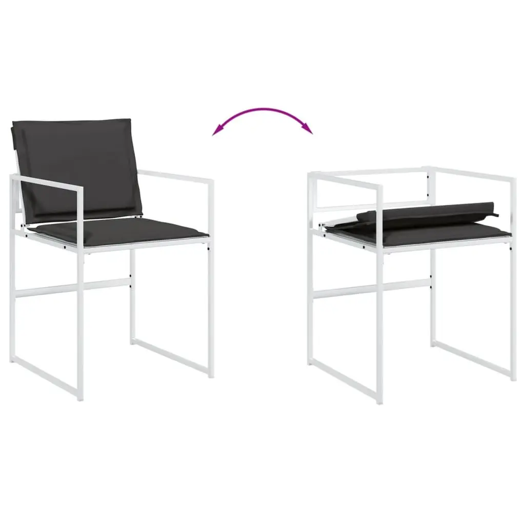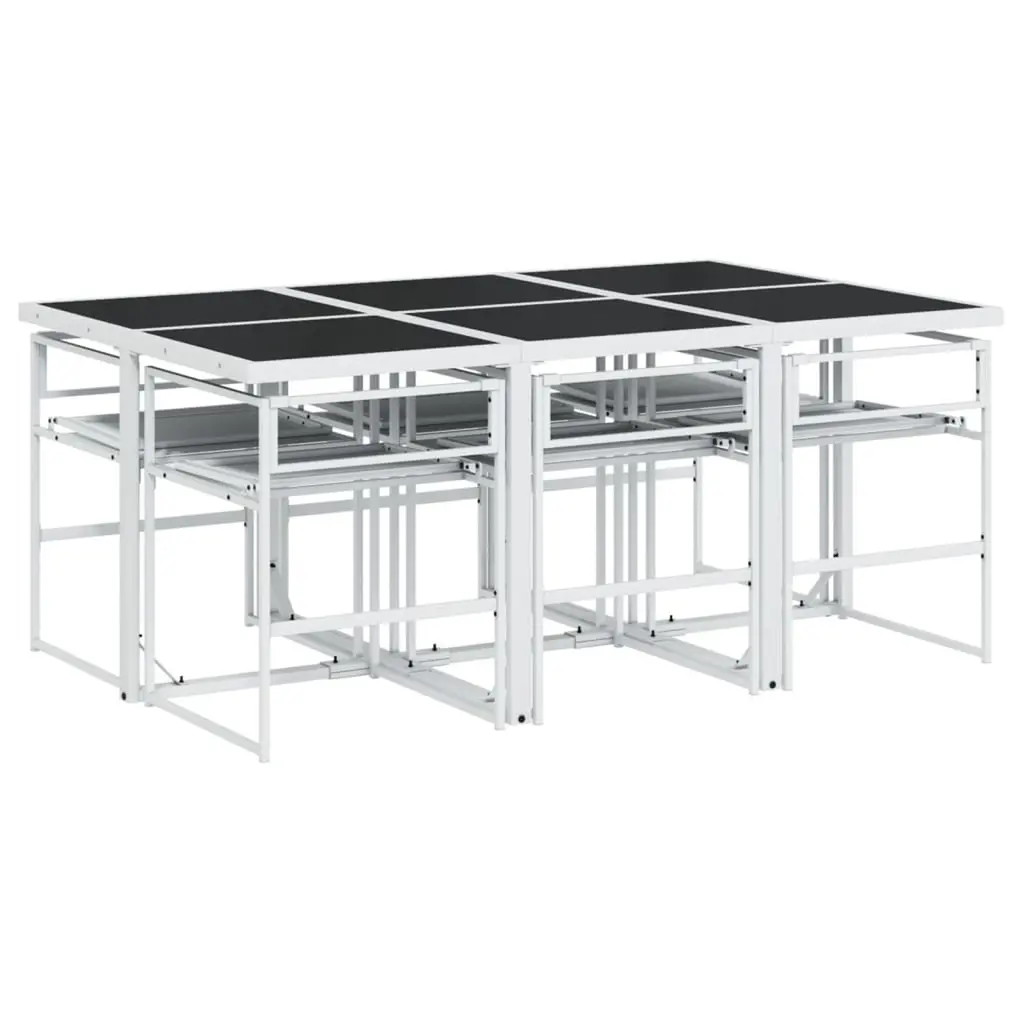 This Modern Rectangular Garden Dining Set mixes style and practicality, making it a perfect fit for any outdoor area. With a sleek design and plenty of seating, this set creates a warm vibe for gatherings, casual meals, or just chilling out while soaking up your garden or patio. Stylish Design: The minimalistic look is enhanced by the sleek color combo of white and anthracite, making sure this dining set fits in any garden theme or decor style.Comfortable Cushions: Each chair has a removable, weather-resistant cushion with a zip for easy cleaning, providing soft support for hours of relaxation.Foldable & Stackable: The set features foldable chairs for simple storage, perfect for smaller outdoor spaces or during colder months when furniture usually gets stored away.Sturdy Construction: Made with a robust, powder-coated steel frame, this dining set can take on the outdoor conditions without losing its style or sturdiness.Generous Seating Capacity: Seats up to six people, making it ideal for family gatherings, barbecues, or a relaxing meal outdoors with friends.