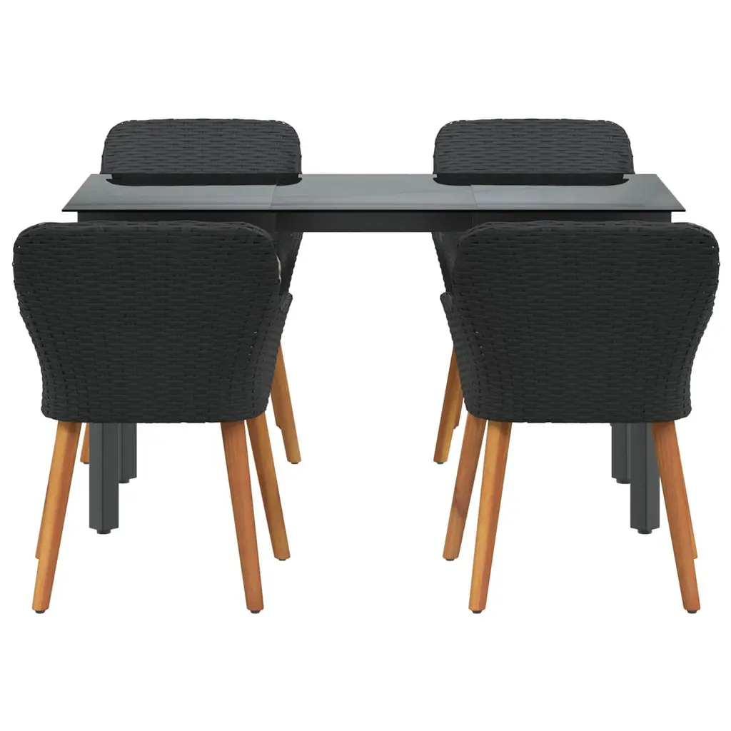 Vidaxl Garden Dining Set With Cushion 5 Pcs Black Poly Rattan
