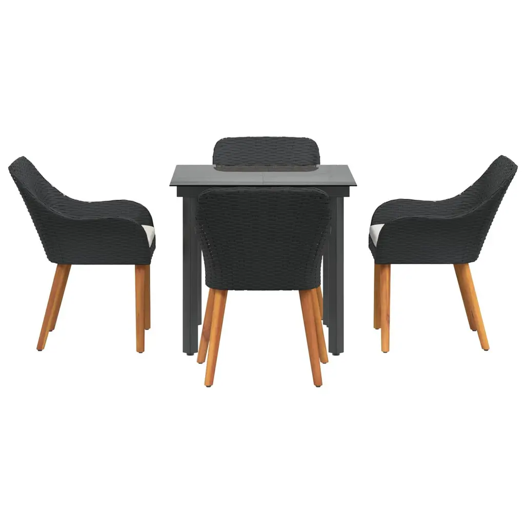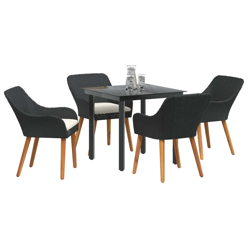 Vidaxl Garden Dining Set With Cushion 5 Pcs Black Poly Rattan
