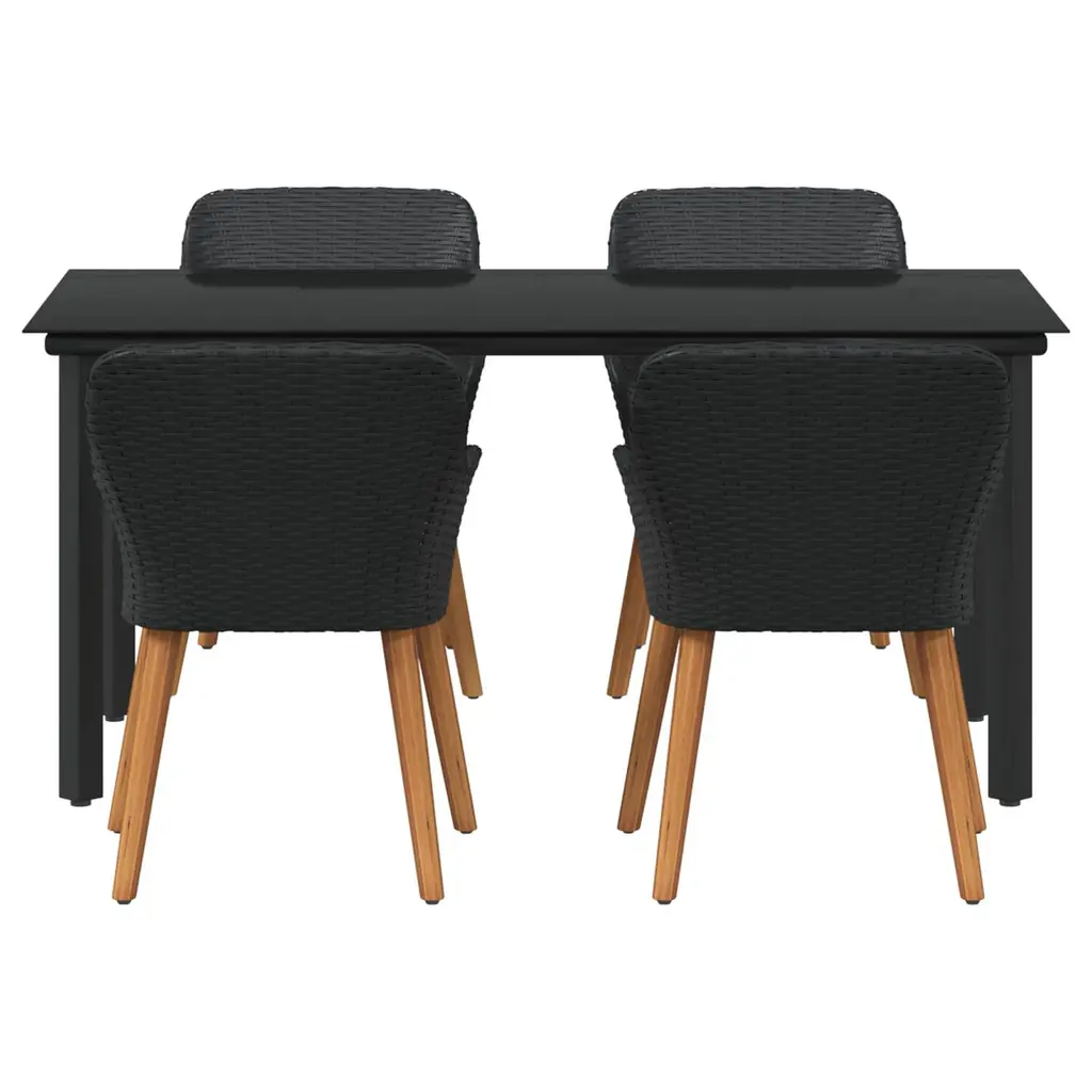 Vidaxl Garden Dining Set With Cushion 5 Pcs Black Poly Rattan