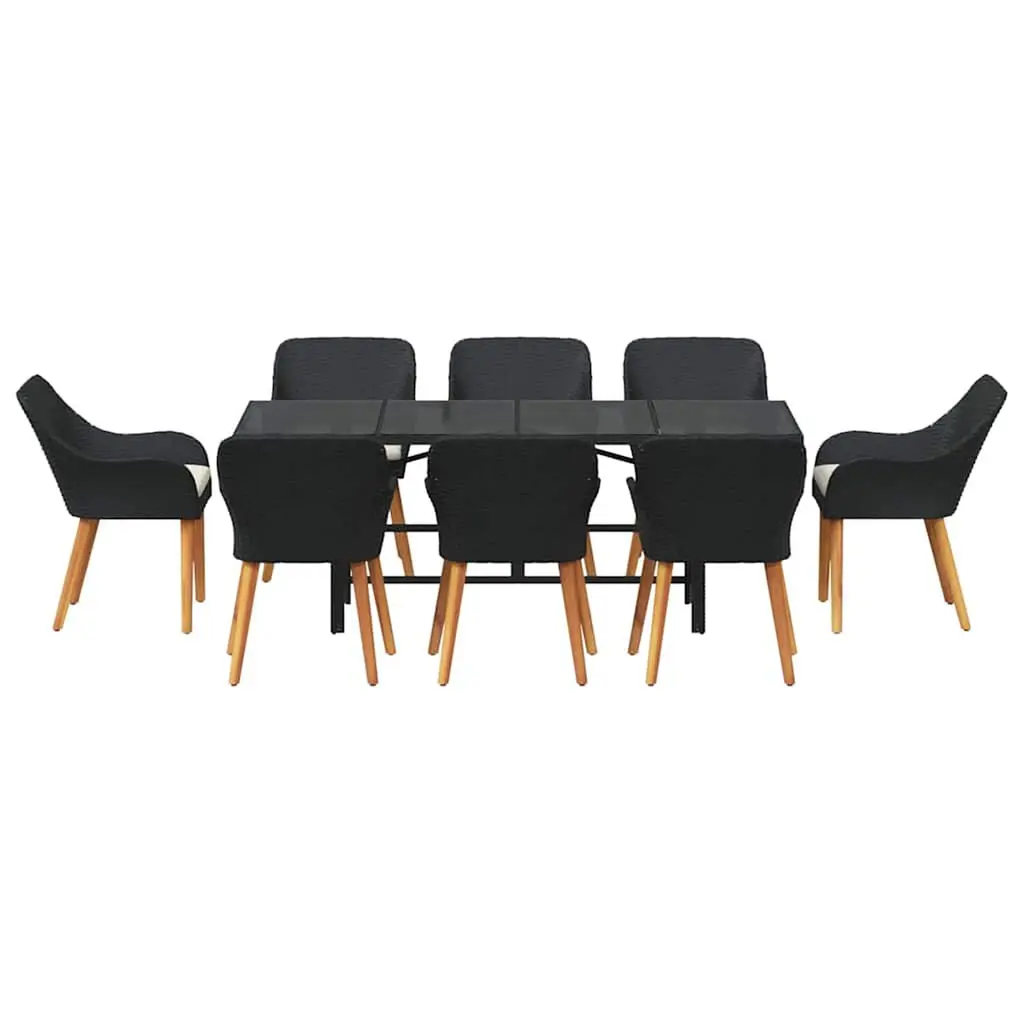 Vidaxl Garden Dining Set With Cushion 9 Pcs Black Poly Rattan