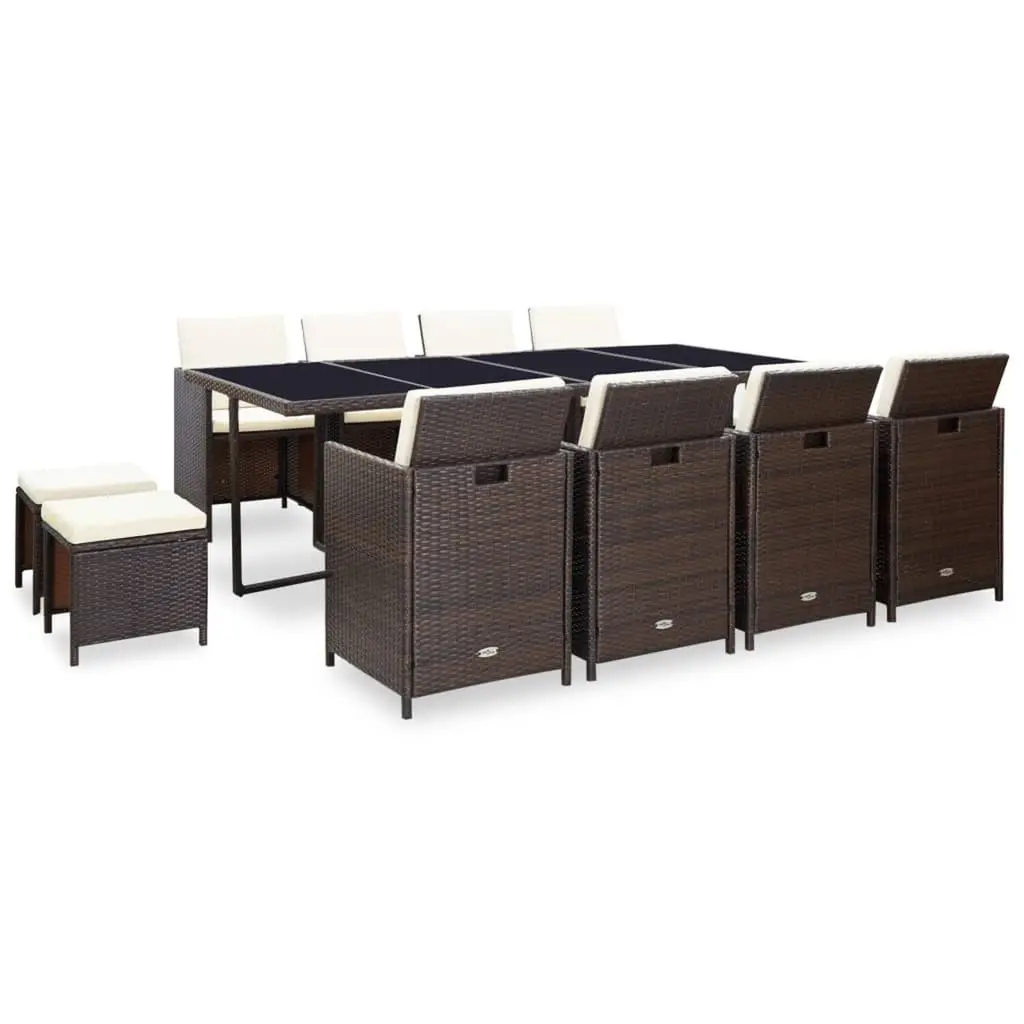 This large outdoor dining set offers a stylish design made from top-notch materials perfect for any garden. With its sleek beige and cream colors, this set not only provides comfy seating for dining but also boosts the look of your outdoor space, making it great for gatherings or casual meals in the fresh air. The weather-resistant PE rattan makes this set durable, perfect for outdoor use in different climates.Comfortably seating up to 10 people, it’s perfect for family gatherings, barbecues, and summer parties.The contemporary style adds a modern flair to your balcony or patio, blending smoothly with your decor.Its smooth glass tabletop is super easy to clean, letting you enjoy meals without any fuss.The cushions are removable and washable, ensuring convenience and a fresh look.