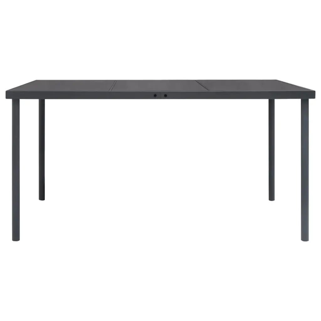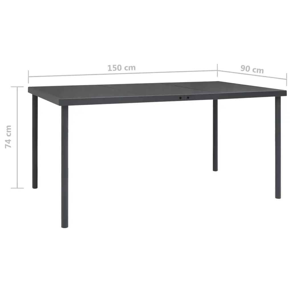 This 5 Piece Modern Outdoor Dining Set is designed to make your outdoor dining better with its sleek and inviting look. It includes a table and four chairs for comfy gatherings in your garden, patio, or terrace, perfect for enjoying meals with family and friends in style. Stylish and Modern: This set has a contemporary design with clean lines and smooth surfaces, making your outdoor space look fab. The grey and anthracite color scheme fits perfectly into various outdoor settings, making it a great home addition.Robust Construction: Built with a tough powder-coated steel frame, this dining set promises long-lasting use and weather resistance, giving you a dependable seating solution outdoors. It's a smart choice for outdoor fun!Comfortable Seating Experience: The Textilene seats offer breathable comfort, allowing air to flow and keeping you comfy during meals, especially on hot days. Thoughtful design means great for long outdoor gatherings.Generous Table Space: The rectangular table measures 59.1 in by 35.4 in, which is perfect for casual lunches or fancy dinners. The tempered glass top adds elegance, enhancing the overall classy look.Simple Assembly Required: Made for convenience, this set is easy to assemble with straightforward instructions. Perfect for anyone wanting to spruce up their outdoor space without headache.