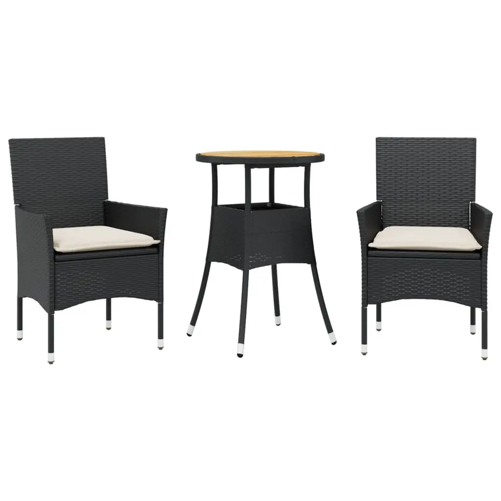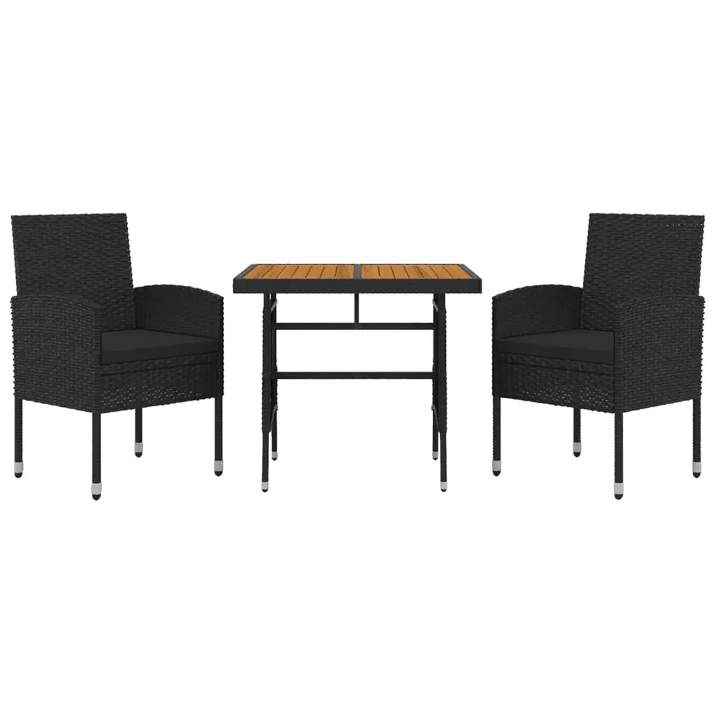 Vidaxl Outdoor Dining Set Black Pe Rattan, Steel, Solid Acacia Wood Small