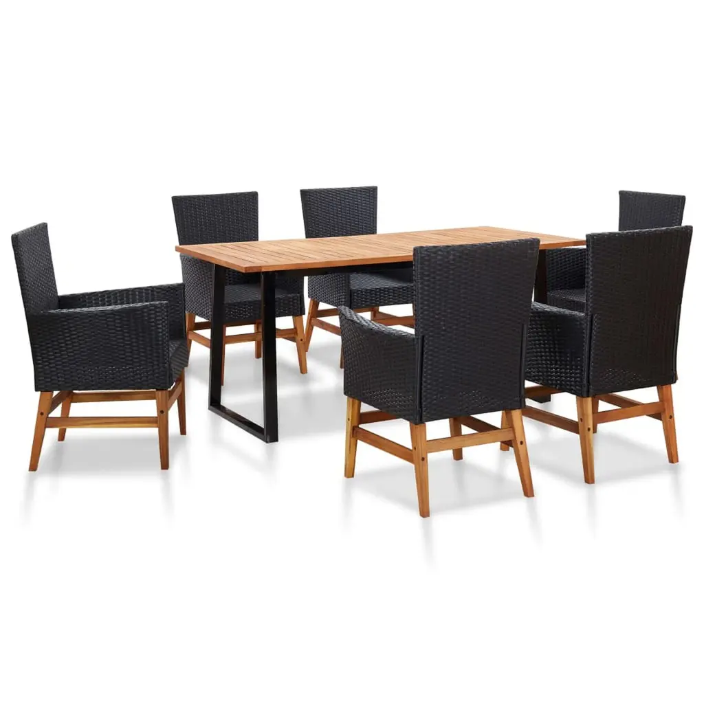 This 7-piece outdoor dining set adds a touch of class to your patio, balcony, or garden with its chic grey and acacia wood aesthetic. It’s ideal for gatherings, comfortably seating up to six people with its ergonomically designed chairs that ensure everyone stays comfy during long meals or entertaining. Weather-Resistant Materials: Made with tough PE rattan, so this set can handle whatever the weather throws at it, staying looking great for seasons to come.Adjustable Armrests: Find your comfy spot with armrests that can be set to two levels, making lounging nice and easy for everyone.Breathable Fabric: The cushions are made from breathable materials, keeping you cool even on the hottest days.Easy Maintenance: The removable covers zip off easily for quick cleaning, helping keep the set looking fresh without the hassle.Stylish Design: This dining set’s modern look boosts the vibe of any outdoor space, combining practicality and comfort.