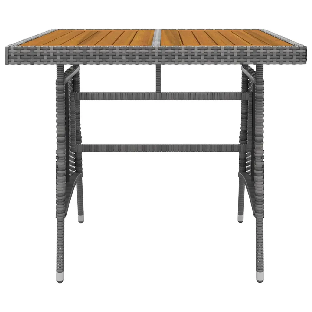 This 5-piece outdoor dining set mixes style and practicality, making it a great addition to your patio, balcony, or garden. It has a solid table and four chairs, showcasing a modern look with clean lines and a slick grey finish that brings elegance and comfort to outdoor meals. Durable Material: Built from weather-resistant PE rattan, this set offers toughness and reliability against all kinds of weather. Its strong frame prevents sagging and the woven style looks great.Modern Design: The sleek, contemporary look suits any outdoor area, making it a cool choice for those who like simplicity but don’t want to compromise on style. This dining set seamlessly fits in with your outdoor decor.Comfortable Seating: The cushions are made with weather-resistant fabric, providing plenty of support for a comfy dining experience. The chairs are designed for comfort during long meals with friends.Easy Maintenance: The materials mean cleaning is a breeze; just wipe it down with a damp cloth. Plus, the cushion covers are removable for easy washing when needed.Space-Efficient Size: With a square table measuring 27.6 in by 27.6 in, this set comfortably seats up to four people, perfect for intimate dinners or casual meetups. Its compact design is ideal for small balconies or patios.
