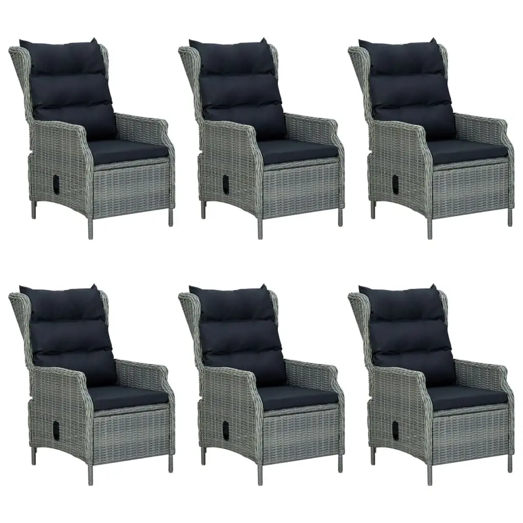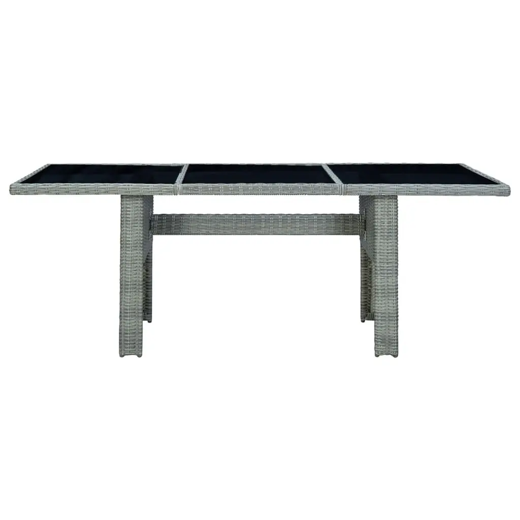 This 7-Piece Outdoor Dining Set has got everything you need for memorable meals outside. Whether you're hosting friends on the patio or having a quiet bite in the garden, it's got you covered. With sleek lines, modern vibes, and handy features like removable cushions and an adjustable backrest, this set invites you to kick back and dine in style. The light grey finish with black accents gives it a fresh look, making it an awesome addition to any outdoor space, bringing a sense of class and relaxation that's sure to impress your guests. Weather-Resistant Materials: PE rattan and powder-coated steel combine to keep this dining set in top shape against the elements. So you can enjoy outdoor meals without fretting over damage or wear over time.Comfortable Seating: With thick, comfy cushions, this set makes every meal a joy. The cushions are cozy and have removable covers for easy cleaning, keeping your set looking great.Adjustable Backrests: The multi-position backrest lets you find your best angle for total relaxation. Whether you’re eating or lounging about, this clever design adapts to suit, perfect for readers and sunbathers alike.Spacious Table: The large rectangular table is perfect for six, making family get-togethers a breeze. Its tempered glass surface adds an elegant touch, creating a stable and easy-care dining area.Versatile Usage: This outdoor dining set fits in various spots like gardens, balconies, or patios. Its modern style suits any outdoor decor, enhancing both socializing and comfort.