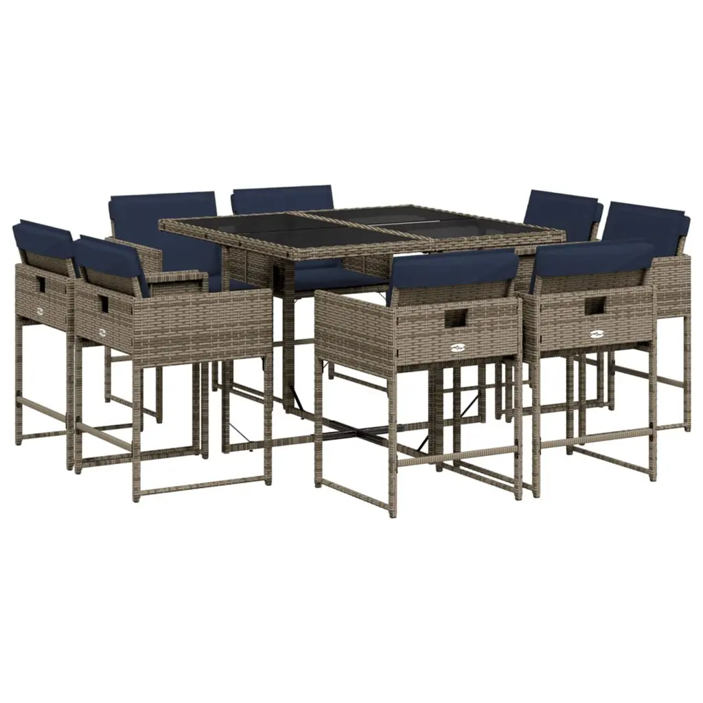 This 11-piece garden dining set is spot on for outdoor gatherings, mixing style with functionality to upgrade your patio experience. With its sleek lines and muted gray colors, the set fits right in at any garden, patio, or balcony, giving you a cozy spot for dining, chatting, or just kicking back outside. Versatile Use: Perfect for outdoor dining, great for summer barbecues, evening meet-ups, or family meals on the patio.Comfortable Seating: Nice cushioned chairs offer amazing comfort, turning your outdoor dining into a treat.Robust Construction: Made strong and weather-resistant, this set's table and chairs will stand the test of time.Stylish Finish: The matte finish adds a sleek touch while being practical for outside use.Convenient Maintenance: Cushions with removable covers make cleaning a doddle, keeping your dining set looking fresh.