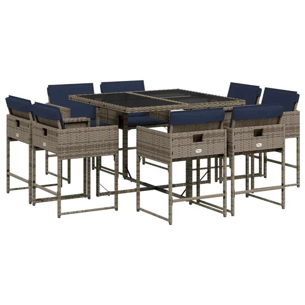 Vidaxl Patio Dining Set Set Of 10 Gray Pe Rattan Large Foldable