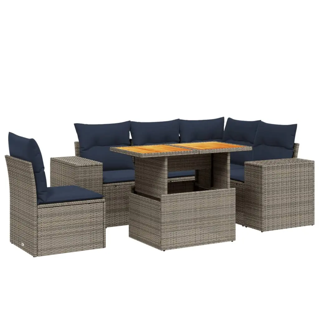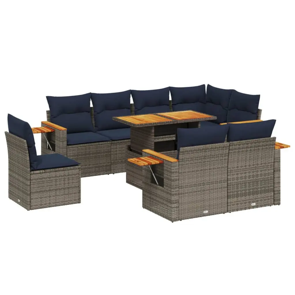 This 15 piece garden dining set is a blend of style, comfort, and practicality, made for up to 14 people. With sturdy materials like powder-coated steel and acacia wood, this set is perfect for making unforgettable outdoor memories, adding a cheerful vibe whether you're on a sunny patio, a relaxed balcony, or in a blooming garden. Ample Seating: Seats up to 14, perfect for family get-togethers or parties.Stylish Design: Modern look with sleek lines in shades of gray, navy, and brown, making your outdoor area pop.Easy Maintenance: Washable cushion covers keep things looking fresh without the fuss.Durable Materials: Made to withstand the weather with UV-resistant materials for long-lasting use.Space-Saving Features: Collapsible and stackable, practical for storage when not in use.