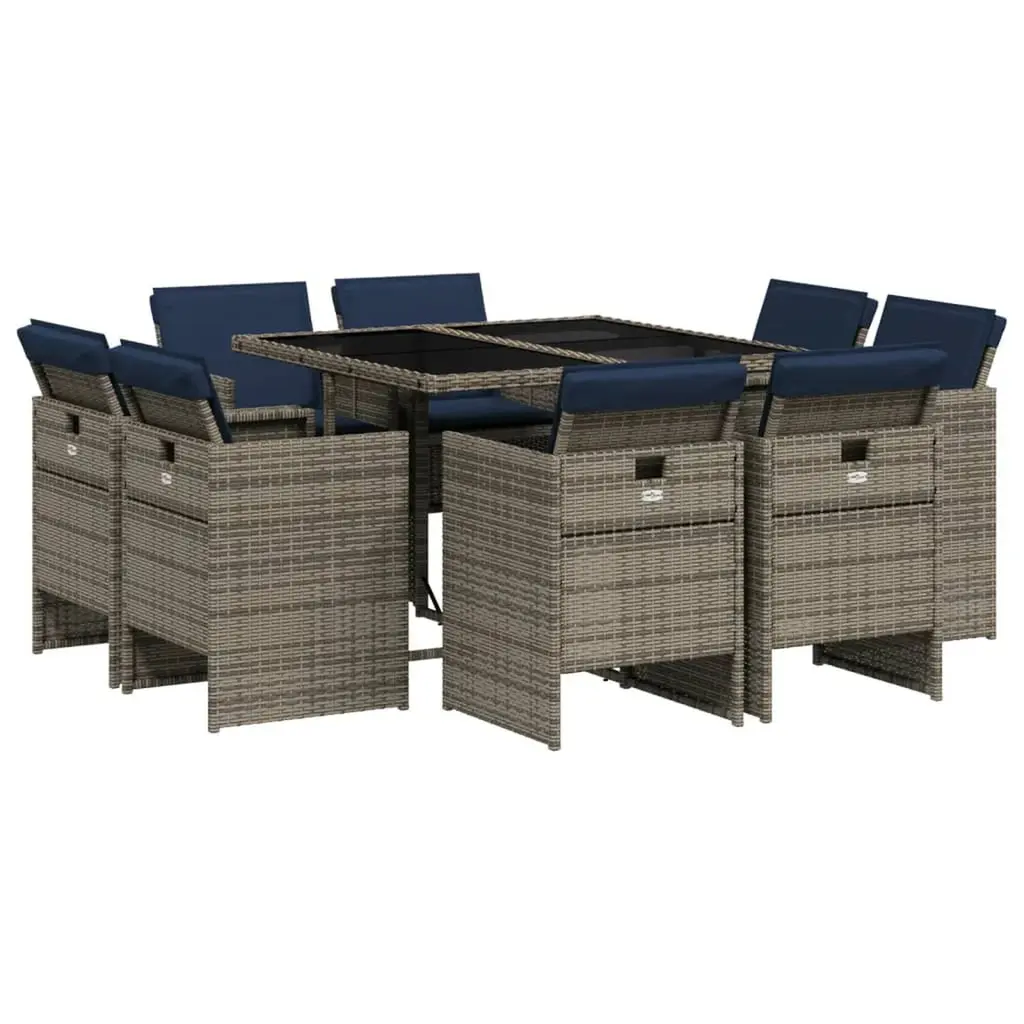 Vidaxl Patio Dining Set Set Of 16 Gray Pe Rattan Large Foldable