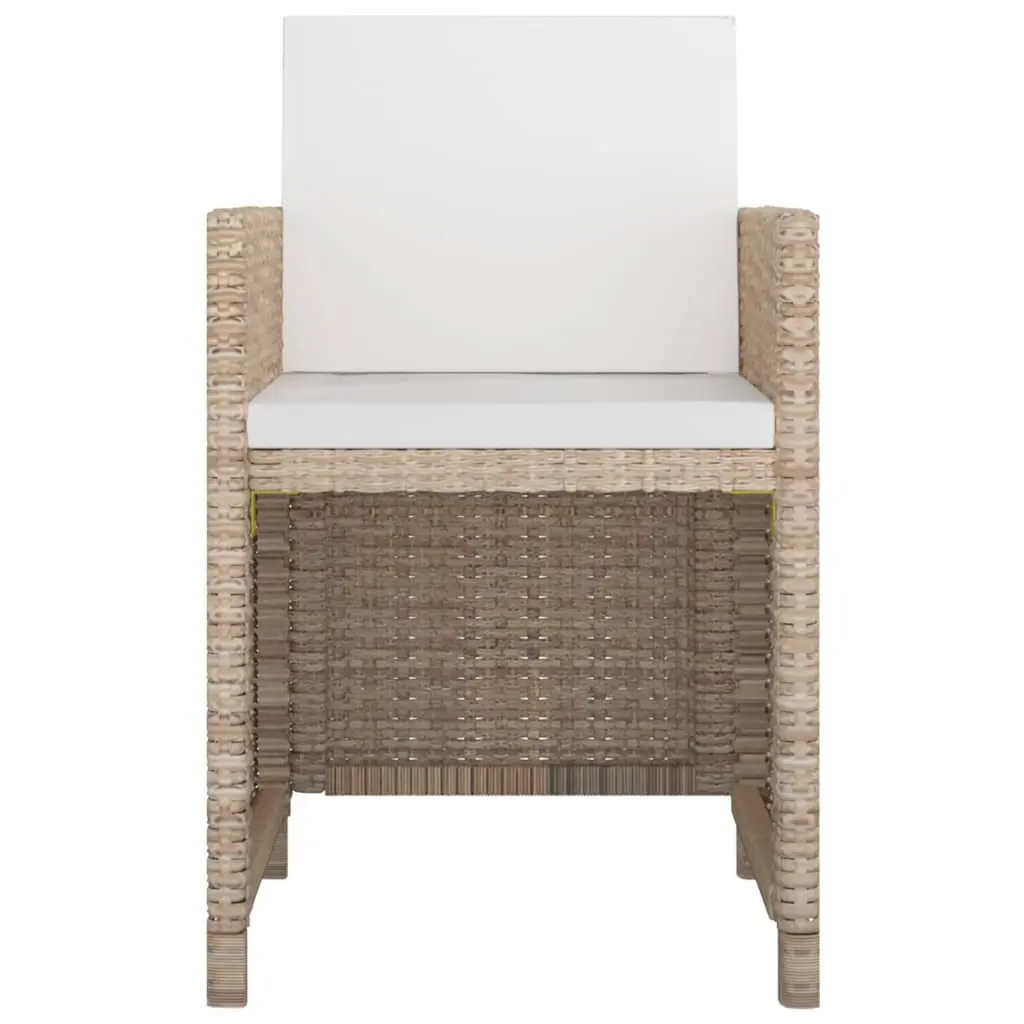 This 5-piece patio dining set mixes comfort and practicality, designed for outdoor dining fun. It features a stylish square table with four comfy chairs that come with thick cushions, offering plenty of seating for family get-togethers or friendly catch-ups. Weather-Resistant Materials: The use of durable, UV-resistant PE rattan means it’ll last, preventing wear and tear typical of outdoor furniture so your set is good to go all year round.Elegant Design: With its classy beige and cream tones and modern flair, this set is not just functional but also looks great, dressing up any garden, patio, or balcony.Comfortable Seating: Each chair comes with a plush 4cm thick cushion, giving you a nice comfy spot for dining or relaxing with friends and family in your outdoor space.Easy Assembly: This patio dining set doesn’t need loads of tools to set up, thanks to clear instructions to help you get going quickly and enjoy your outdoor dining.Versatile Usage: Perfect for all sorts of occasions, this dining set is ready for everything from casual dinners to fancy garden parties, making sure you’ve got something for any gathering.