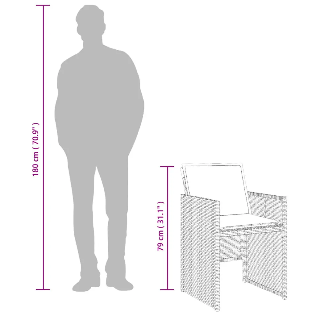 This 5-piece patio dining set is perfect for enjoying meals outside or just relaxing in the garden. It combines style and practicality for outdoor dining. With its sleek design and comfy cushions, it provides a welcoming space for hanging out with family and friends in your garden or patio. Versatile Outdoor Use: This patio dining set enlivens any outdoor area, perfect for intimate dinners or lively lunches, making it a popular choice for sunny-day dining. Sturdy Construction: Built with a robust mix of powder-coated steel and UV-resistant PE rattan, this dining set withstands fading and wear, maintaining its aesthetic through all types of weather. Effortless Maintenance: The cushions zip off easily for washing, making it simple to keep your furniture looking pristine with minimal effort all year. Space-Saving Design: The chairs and table stack and fold away neatly, a great solution for anyone with limited outdoor storage, optimizing your space. Aesthetic Appeal: The trendy color scheme blends black frames with creamy cushions, ensuring your outdoor area looks slick and inviting, complementing any outdoor decor style.