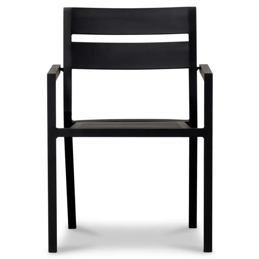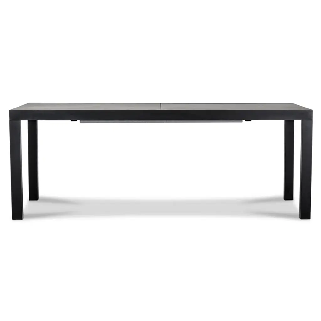 This 13-piece outdoor dining set is ready to bring everyone together for BBQs and special occasions. It includes an extendable dining table and 12 chairs, all pieces featuring a powder-coated aluminum frame with a black finish that works with various styles and color schemes. The stackable chairs have a classic horizontal slat back design with matching slats on the seat for a modern look. It's resistant to weather, water, UV rays, rust, and scratches – making this a durable and well-protected collection for any space.