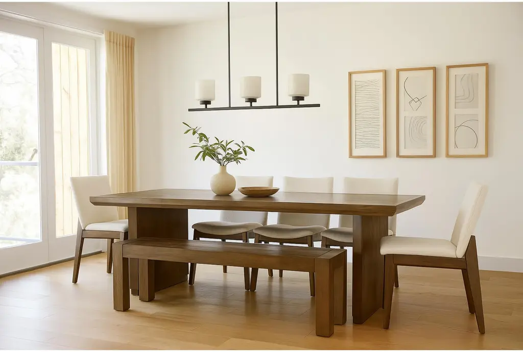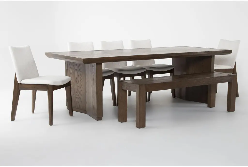 Voyage Brown 94" Trestle Dining With Bench + Upholstered Chair Set For 8 By Nate Berkus + Jeremiah Brent