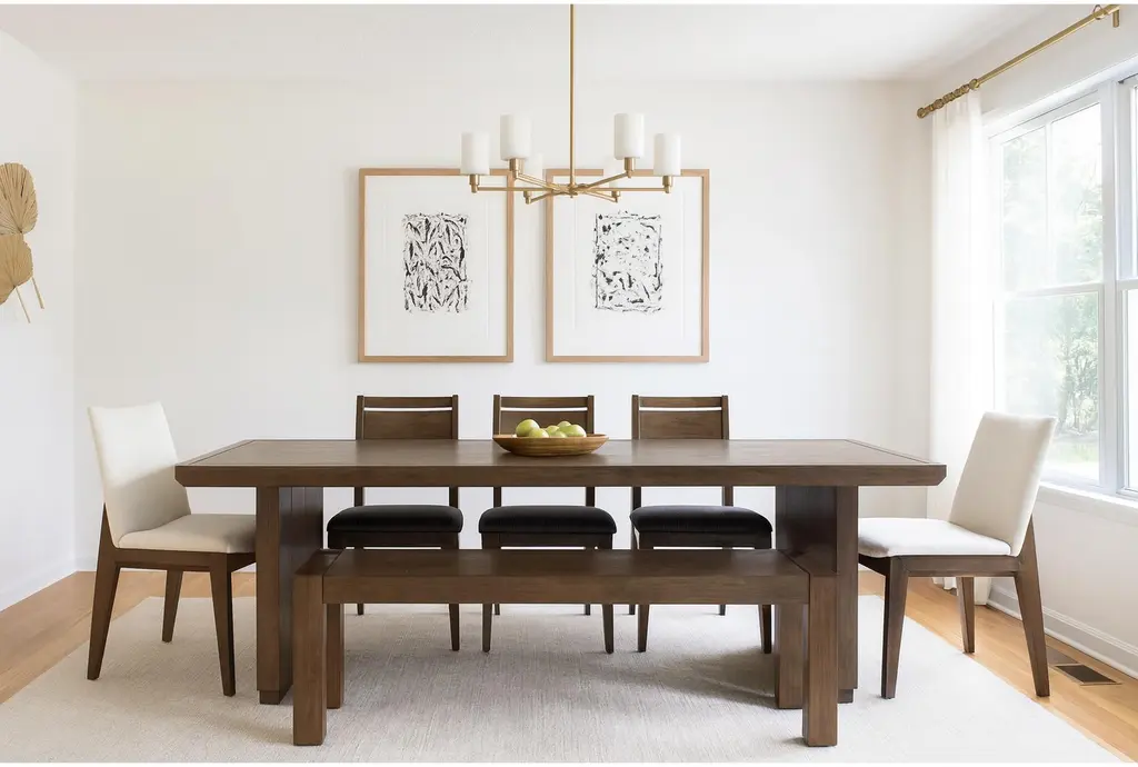 Voyage Brown 94" Trestle Dining With Bench Wood + Upholstered Chair Set For 8 By Nate Berkus + Jeremiah Brent