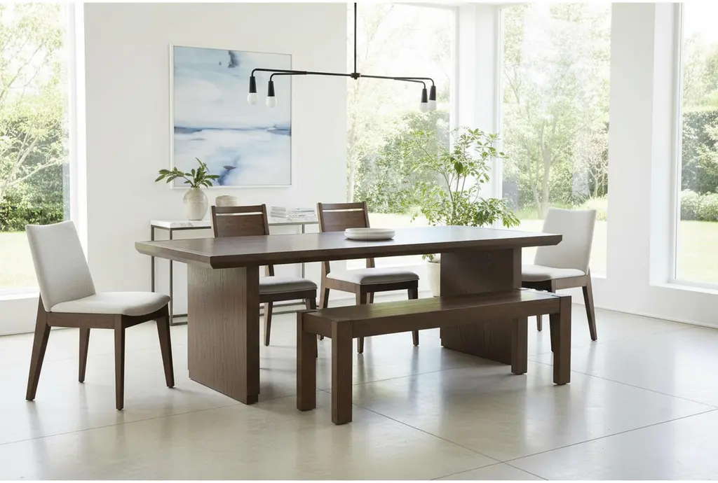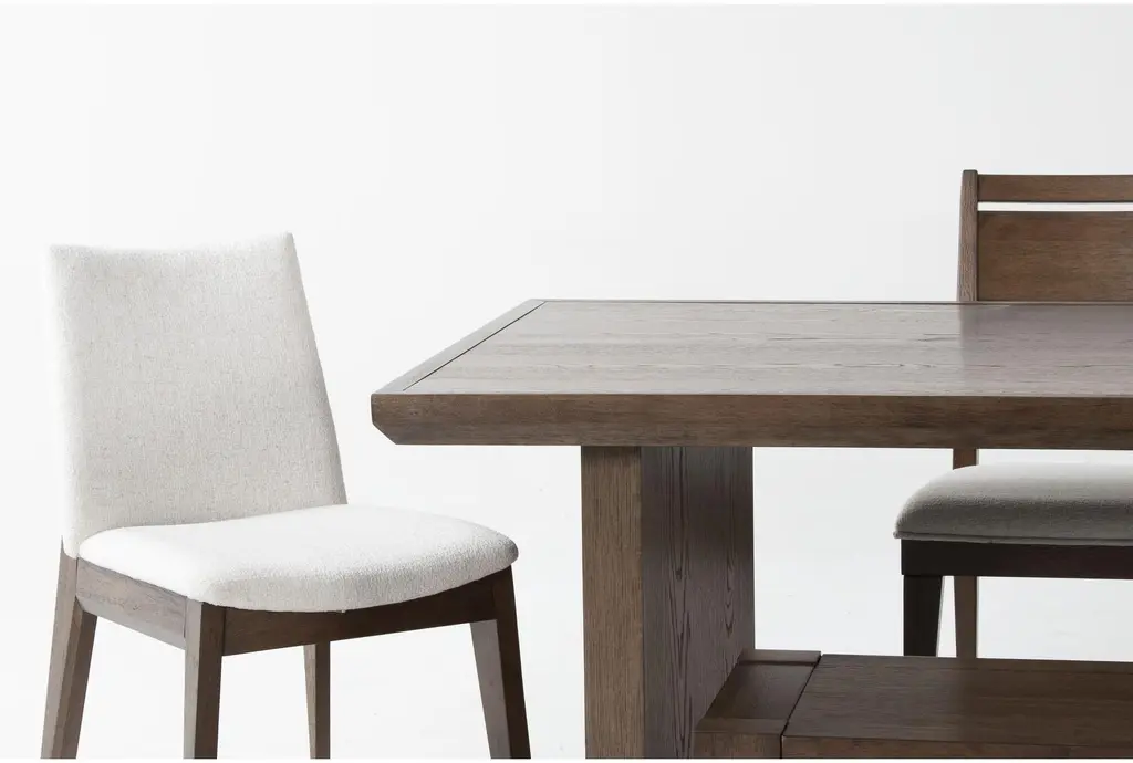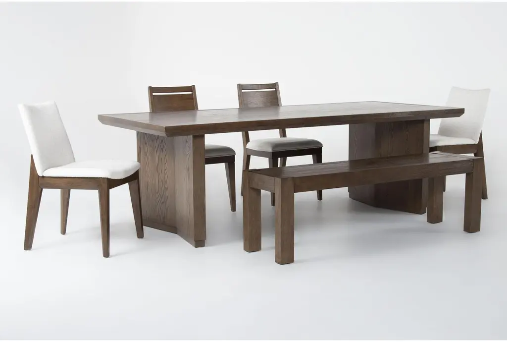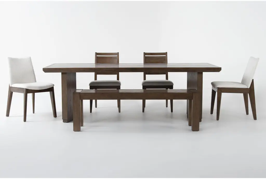 Voyage Brown 94" Trestle Dining With Dining Bench Wood + Upholstered Chair Set For 6 By Nate Berkus + Jeremiah Brent