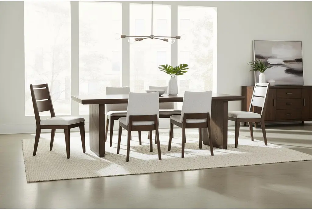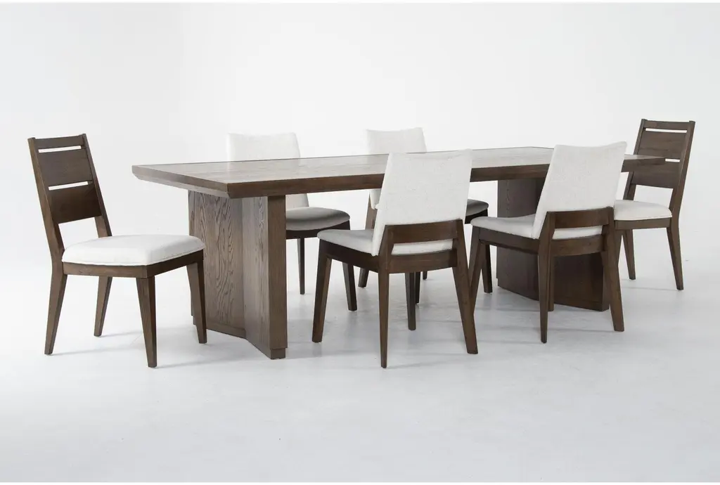 Voyage Brown 94" Trestle Dining With Upholstered + Wood Back Chair Set For 6 By Nate Berkus + Jeremiah Brent | Rectangular