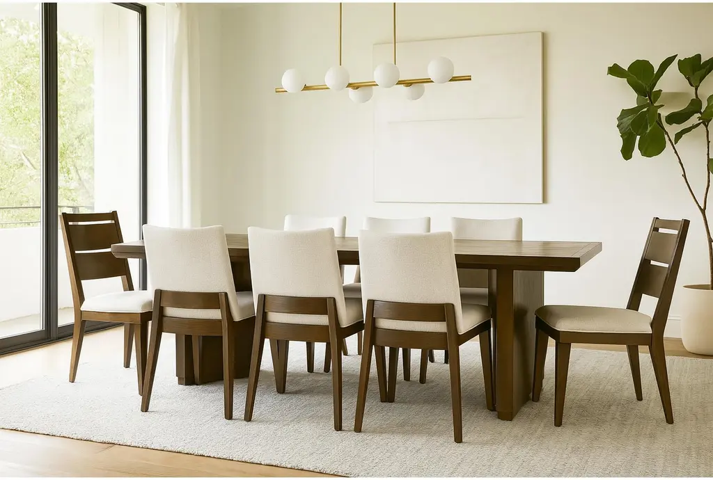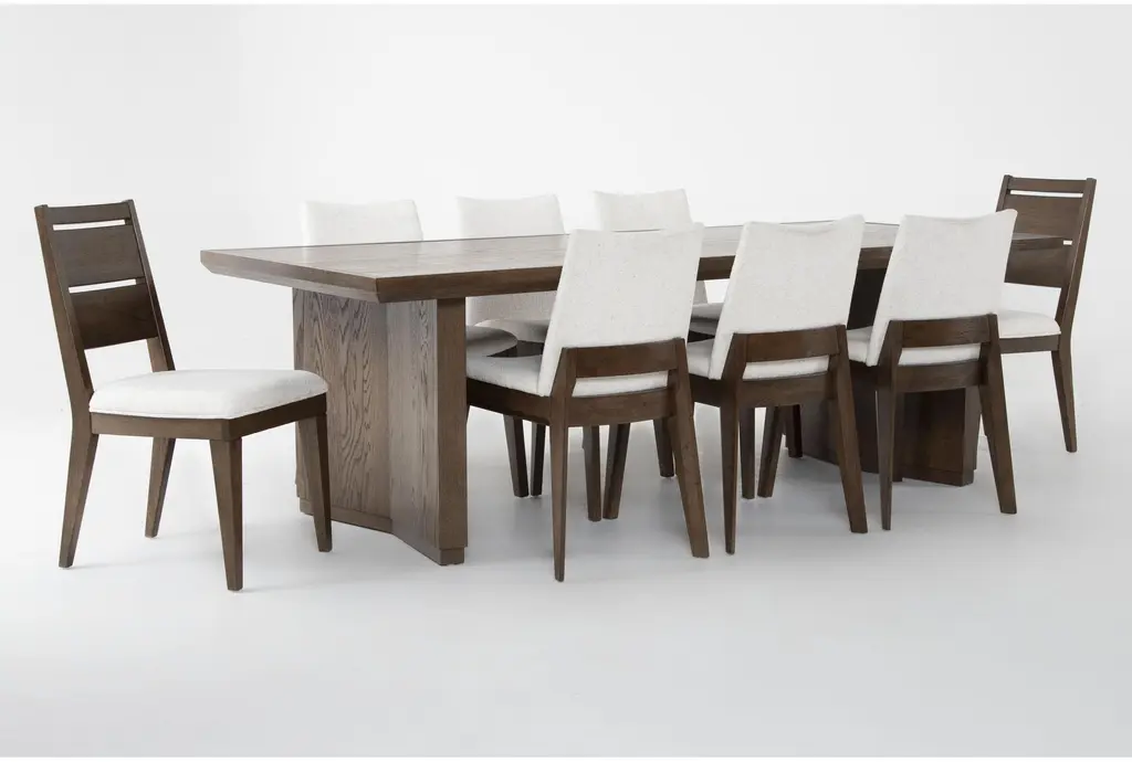 Voyage Brown 94" Trestle Dining With Upholstered + Wood Back Chair Set For 8 By Nate Berkus + Jeremiah Brent | Rectangular