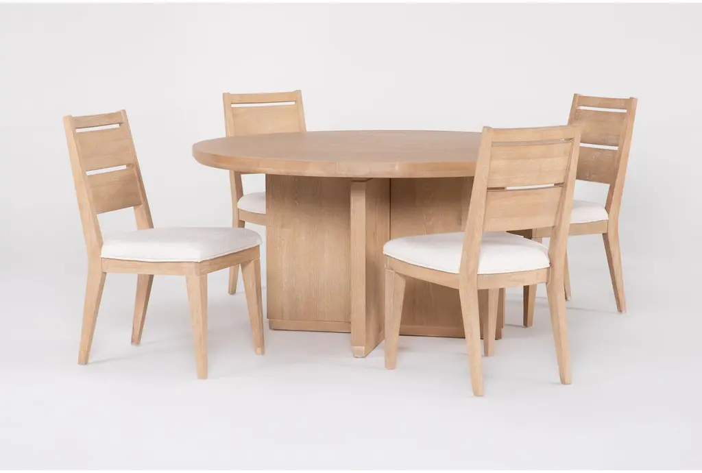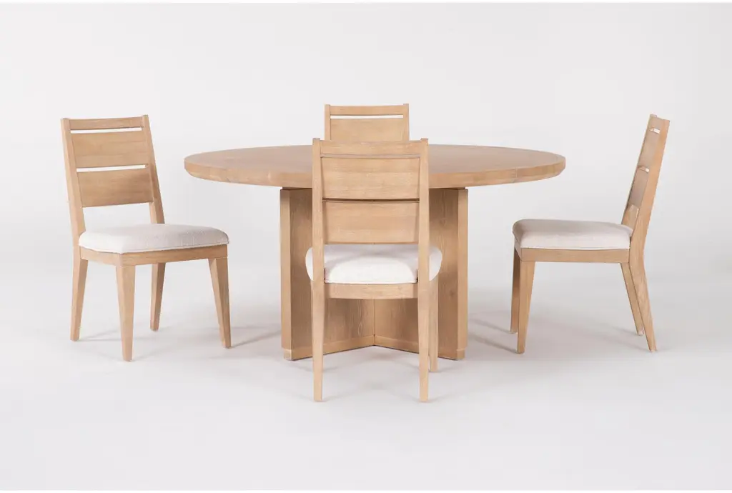 Voyage Natural 60" Round Dining With Wood Back Dining Chair Set For 4 By Nate Berkus + Jeremiah Brent | Asian Hardwood
