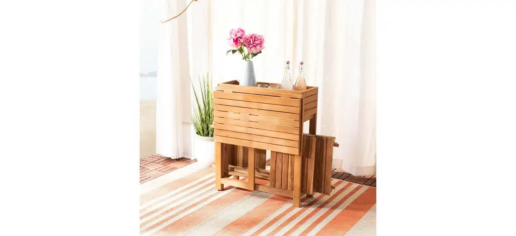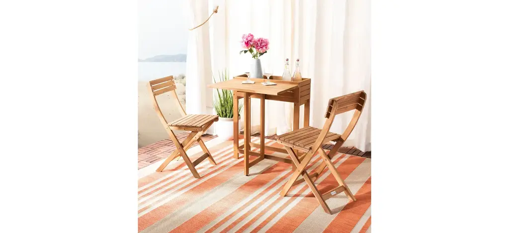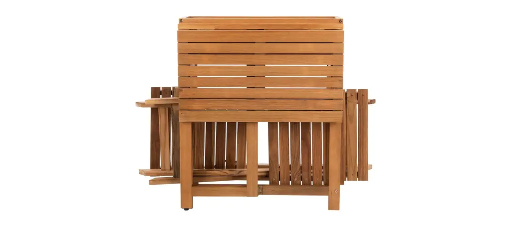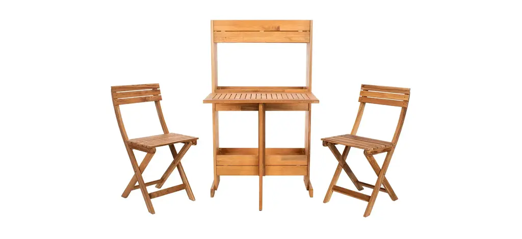 The porch, patio or balcony becomes your favorite neighborhood bistro with the Welch 3-pc. Outdoor Cabinet Dining Set. With two matching chairs and a smart flower shelf made from exotic teak and eucalyptus, the easy setup and fold away storage of the Welch bistro set brings instant cafe charm to any outdoor spot.