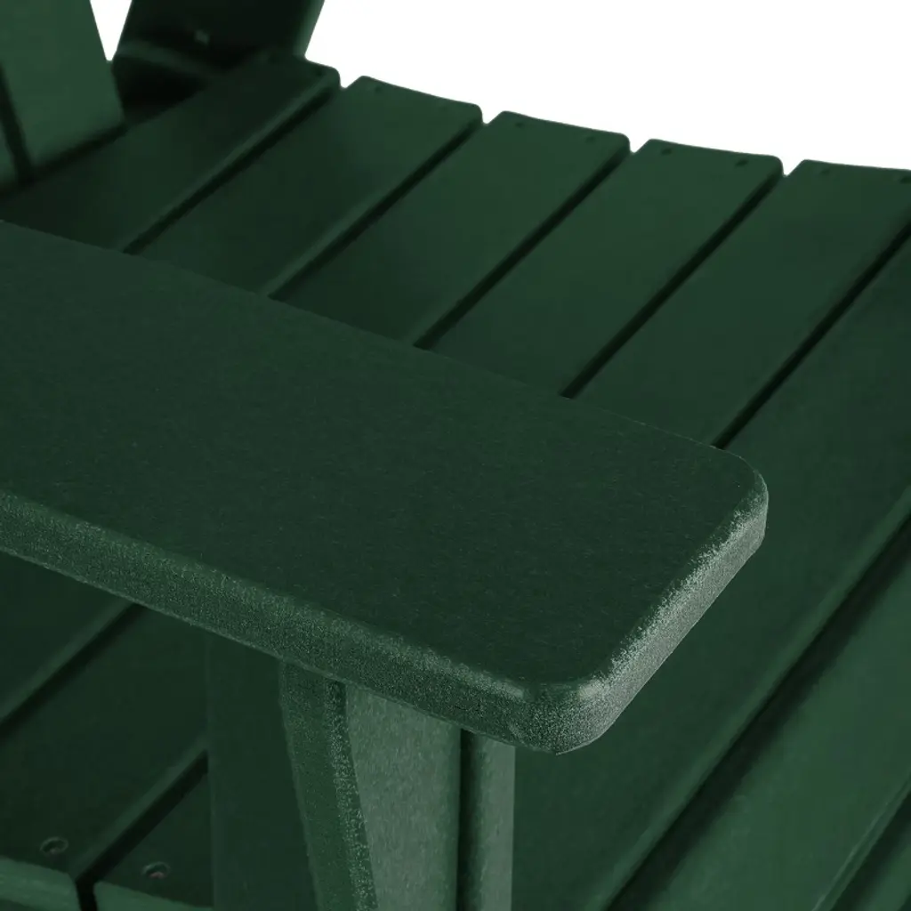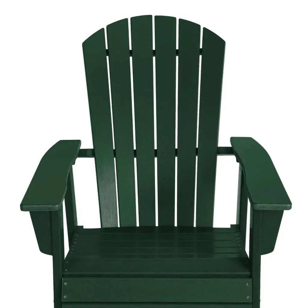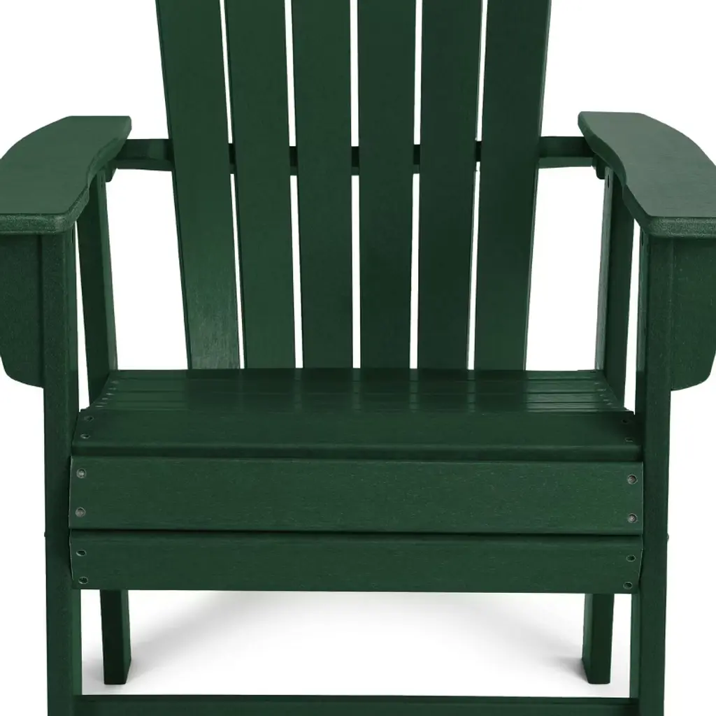 Impress your loved ones at your next outdoor family dinner with the 5-Piece outdoor dining set. This all-weather set seats up to four and features curved-back dining chairs with the look of Adirondack design. With a durable and spacious square dining table, this set is perfect for casual outdoor dining. Created with HDPE material adds durability and can withstand the outdoor elements thanks to the HDPE's natural UV and weather resistant. The dining table and chair are made to look like natural wood without any of the disadvantages of natural wood, meaning that this outdoor dining set isn't prone to splinters, cracks, or peeling.While we strive to accurately represent product colors, please be aware that actual colors may vary slightly due to individual screen settings and lighting conditions. FeaturesSet includes: Four (4) Adirondack dining chairs, One (1) square dining tableMade with an eco-friendly HDPE lumberUV and weather resistant finish and fade resistant colorsContoured seat, wide armrests, curved seashell backrest and waterfall seat frontSolid heavy-duty construction1.97" diameter center hole for standard umbrellaDetails:Product Type: Patio Dining SetsWhat's Included: (4) Dining Chair; (1) Dining TableDining ChairDimensions: 28" W x 24.5" D x 40.25" HWeight: 36 lbs.Seat Width: 20.25"Seat Depth: 18"Seat Height: 16"Weight Capacity: 330 lbs.Dining TableDimensions: 43" W x 43" D x 29.5" HWeight: 80 lbs.Weight Capacity: 330 lbs.