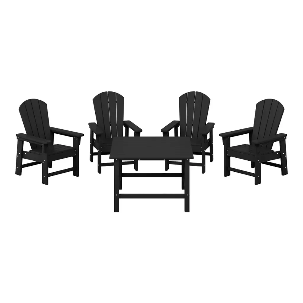 Westintrends 7 Piece Outdoor Patio Dining Table And Adirondack Armchair Set, Black