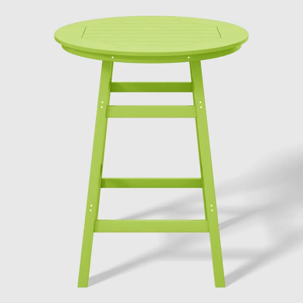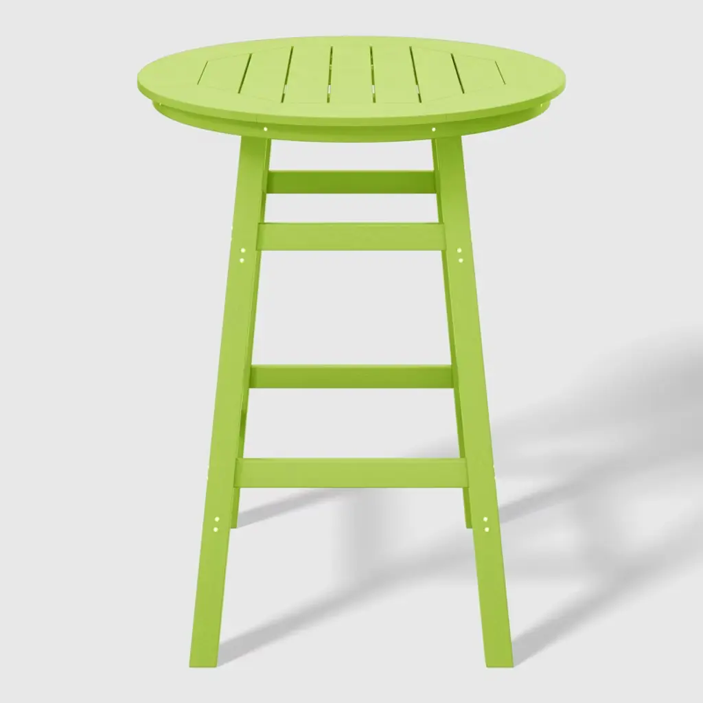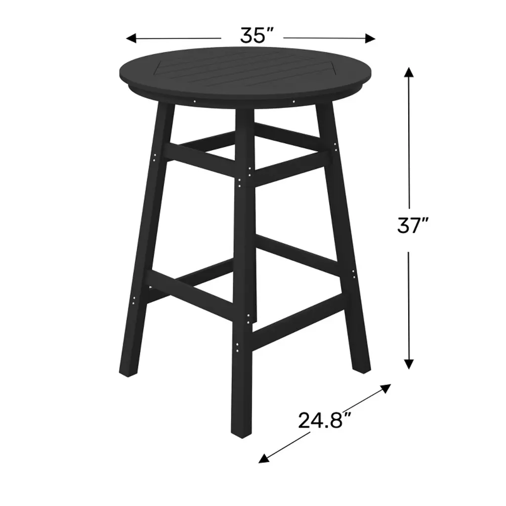 This 5-Piece HDPE Outdoor Patio Dining Bar Bistro Table Set with a 29" High Round Bar Stools presents a sophisticated addition to your outdoor patio. Designed for comfort and space with the footrest on the barstools and the 35" round bar bistro table. crafted from durable and recycled HDPE material, its design is tailored for outdoor use, boasting UV and weather-resistant properties that safeguard the dining set. available in a palette of fade-resistant solid colors, it ensures the enduring vibrancy of its charming hue each season.While we strive to accurately represent product colors, please be aware that actual colors may vary slightly due to individual screen settings and lighting conditions. FeaturesSet Includes: One (1) 42" High dining table, Four (4) 29" Bar StoolsDurable HDPE constructionUV & fade resistant for protection against the sunWeather resistance for protection against the outdoor elementsSturdy square crossbeam table design construction for superior stabilityBuilt-in umbrella hole accommodates standard-sized umbrellas for added functionality35" Wide table topDetails:Product Type: Patio Bar Dining SetsWhat's Included: (4) Bar Stool; (1) Bar TableBar StoolDimensions: 13.75" W x 13.75" D x 29.75" HWeight: 14.5 lbs.Seat Width: 13.75"Seat Depth: 13.75"Seat Height: 29.5"Weight Capacity: 330 lbs.Bar TableDimensions: 35" W x 35" D x 42" HWeight: 50.25 lbs.Seat Width: 13.75"Seat Depth: 13.75"Seat Height: 29.5"Weight Capacity: 300 lbs.