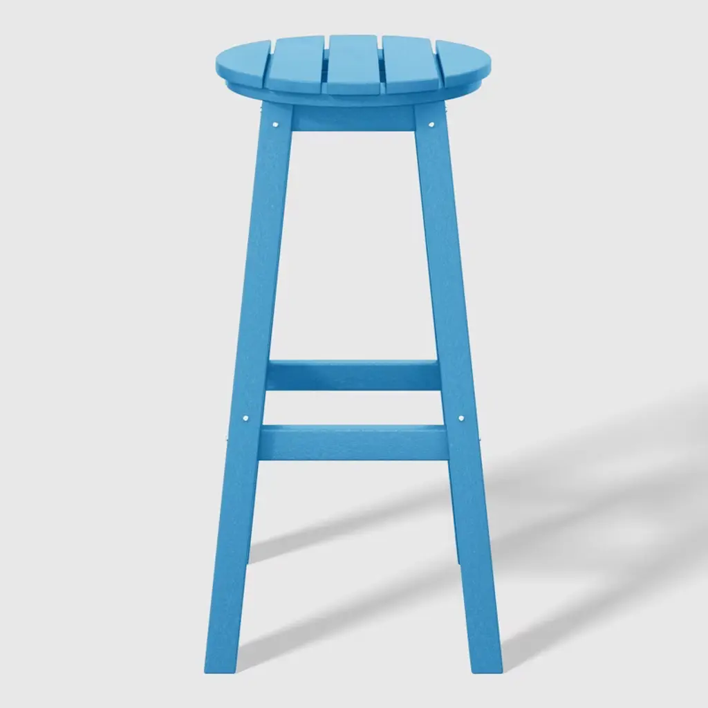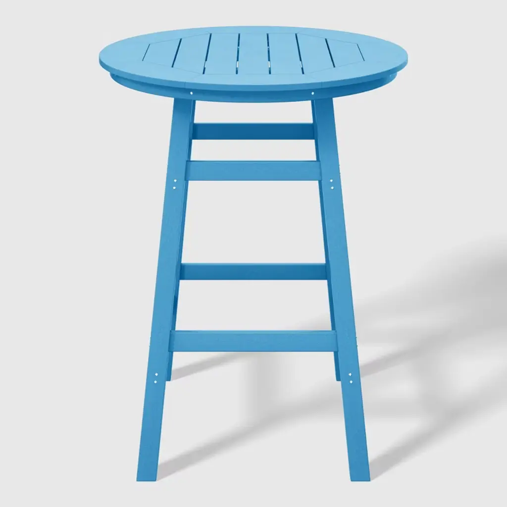 This 5-Piece HDPE Outdoor Patio Dining Bar Bistro Table Set with a 29" High Round Bar Stools presents a sophisticated addition to your outdoor patio. Designed for comfort and space with the footrest on the barstools and the 35" round bar bistro table. crafted from durable and recycled HDPE material, its design is tailored for outdoor use, boasting UV and weather-resistant properties that safeguard the dining set. available in a palette of fade-resistant solid colors, it ensures the enduring vibrancy of its charming hue each season.While we strive to accurately represent product colors, please be aware that actual colors may vary slightly due to individual screen settings and lighting conditions. FeaturesSet Includes: One (1) 42" High dining table, Four (4) 29" Bar StoolsDurable HDPE constructionUV & fade resistant for protection against the sunWeather resistance for protection against the outdoor elementsSturdy square crossbeam table design construction for superior stabilityBuilt-in umbrella hole accommodates standard-sized umbrellas for added functionality35" Wide table topDetails:Product Type: Patio Bar Dining SetsWhat's Included: (4) Bar Stool; (1) Bar TableBar StoolDimensions: 13.75" W x 13.75" D x 29.75" HWeight: 14.5 lbs.Seat Width: 13.75"Seat Depth: 13.75"Seat Height: 29.5"Weight Capacity: 330 lbs.Bar TableDimensions: 35" W x 35" D x 42" HWeight: 50.25 lbs.Seat Width: 13.75"Seat Depth: 13.75"Seat Height: 29.5"Weight Capacity: 300 lbs.