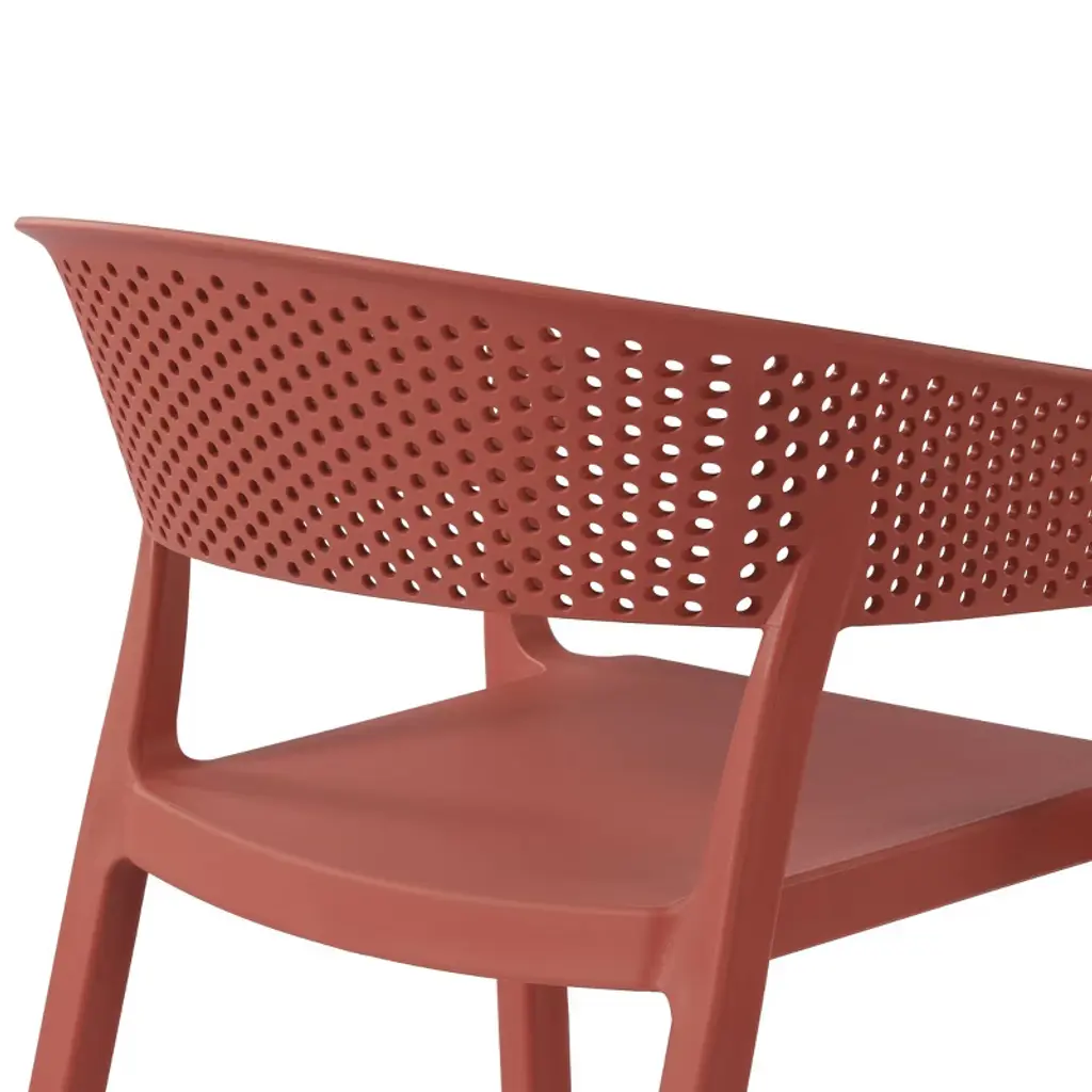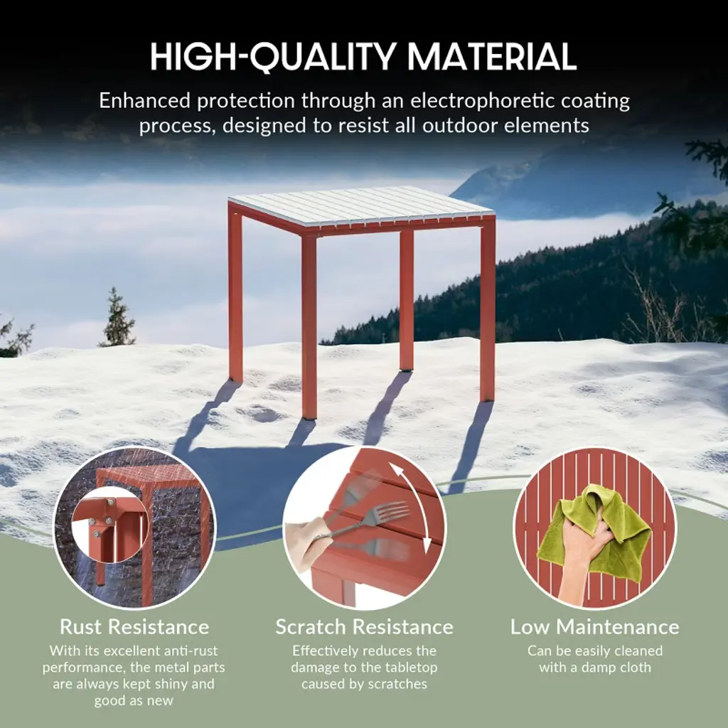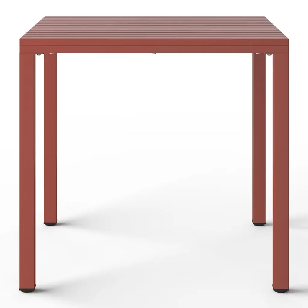Elevate your patio with this contemporary 5-piece dining set, designed for both form and function. The 31.5" square table, featuring a sleek, scratch-resistant polystyrene top that has a wood-like pattern, is grounded by a modern iron frame with a durable, rust-resistant e-coating to ensure added protection against the outdoors. Adjustable leveling feet ensure stability on any surface, while the slatted tabletop offers practical drainage. Complementing the table are four stackable chairs, crafted from UV and fade-resistant polypropylene resin. Their perforated back design promotes airflow, keeping you comfortable on warm days, and rubber foot pads protect your floors while adding stability. The clean lines and vibrant hues of this set bring a touch of modern sophistication to your outdoor space, creating an inviting setting for al fresco gatherings making this the perfect square patio table set for the summer.While we strive to accurately represent product colors, please be aware that actual colors may vary slightly due to individual screen settings and lighting conditions. FeaturesSet Includes: Four (4) Plastic Resin Dining Side Chairs and One (1) 31.5" Wide Square Patio Dining TableDurable Construction: Table With A Strong Iron Frame And Polystyrene Resin Top; Chairs Crafted From Long-Lasting Polypropylene (PP).E-Coating Finish Provides Rust and Fade Resistance To The Iron Metal, Ensuring Longevity and Weather Resistance In Outdoor ConditionsStackable Patio Dining Chairs To Help Maximize Storage Space With Modern, Perforated Backrest for Enhanced Airflow and Cooling ComfortRobust and Thick Iron Metal Table Legs Offer Increased Stability and Adjustable Leveling Feet Enhance Stability On Uneven Surfaces, Eliminating WobbleEffortless Setup: Chairs Arrive Fully Assembled, Table Requires Simple Leg Assembly For Quick AssemblyWater Easily Drains Through The Slatted Design, Keeping The Tabletop Dry By Preventing PuddlingDetails:Product Type: Patio Dining SetsWhat's Included: (4) Dining Chair; (1) Dining TableDining ChairDimensions: 21" W x 20" D x 29" HWeight: 9.55 lbs.Seat Width: 17.75"Seat Depth: 16.5"Seat Height: 16.5"Weight Capacity: 260 lbs.Dining TableDimensions: 59" W x 35.5" D x 29.5" HWeight: 38 lbs.Table Top Width: 31.5"Table Top Depth: 31.5"Table Top Thickness: 1.5"Seat Width: 17.75"Seat Depth: 16.5"Weight Capacity: 200 lbs.