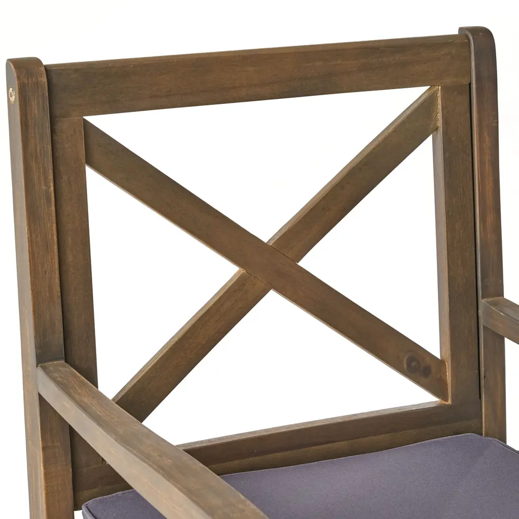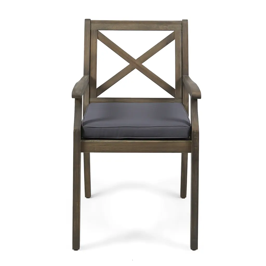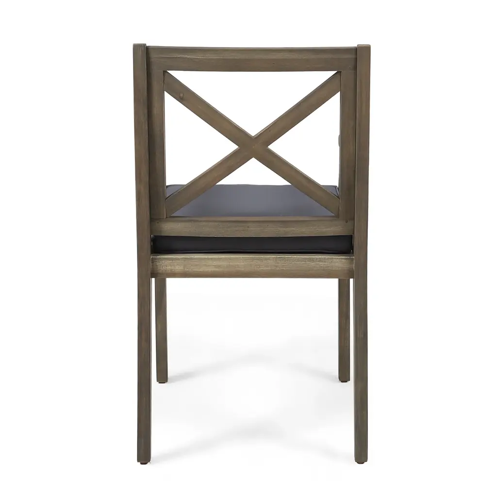 Wooden Dining Chair Set With Cushions For Patio - Dark Grey