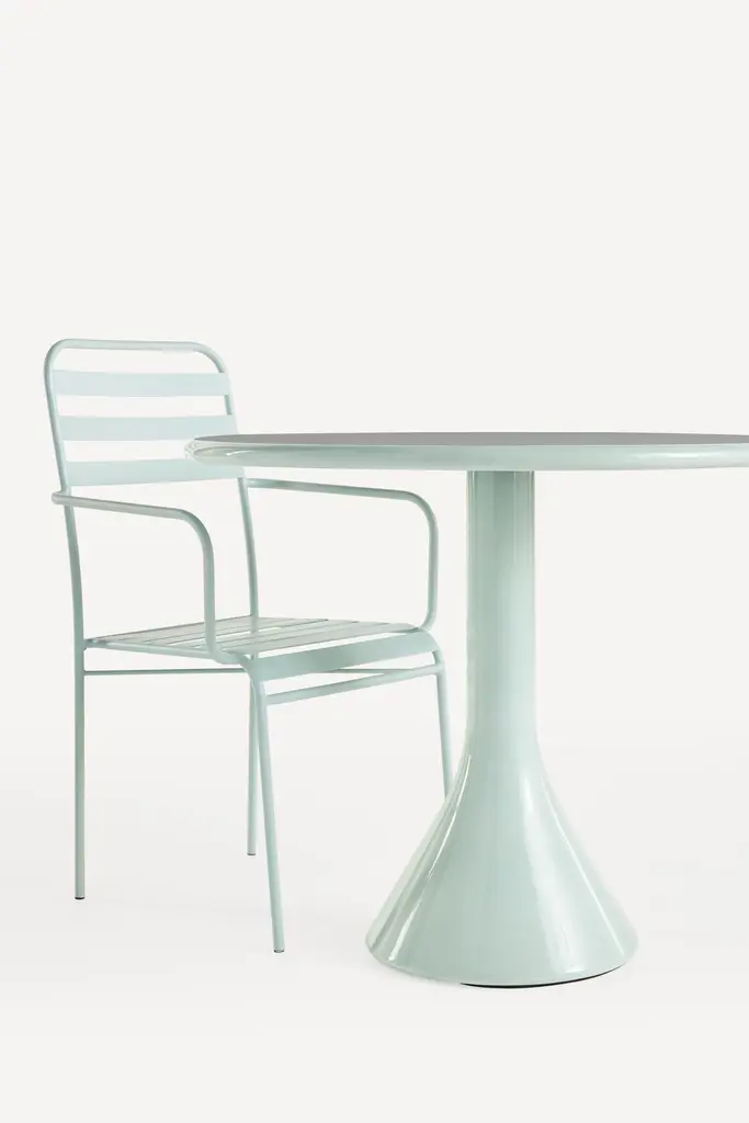 Elevate your patio with this charming 3-piece bistro set, blending curved silhouettes and a matte finish for timeless appeal. The oval table and two open-slat chairs create an intimate dining space perfect for small gatherings. Its pastel hue and clean lines complement any outdoor decor, from bohemian gardens to contemporary balconies, while adding a playful retro touch.
