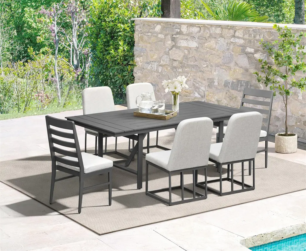 Yarmouth Outdoor Dining Table, 4 Upholstered And 2 Panel Chairs