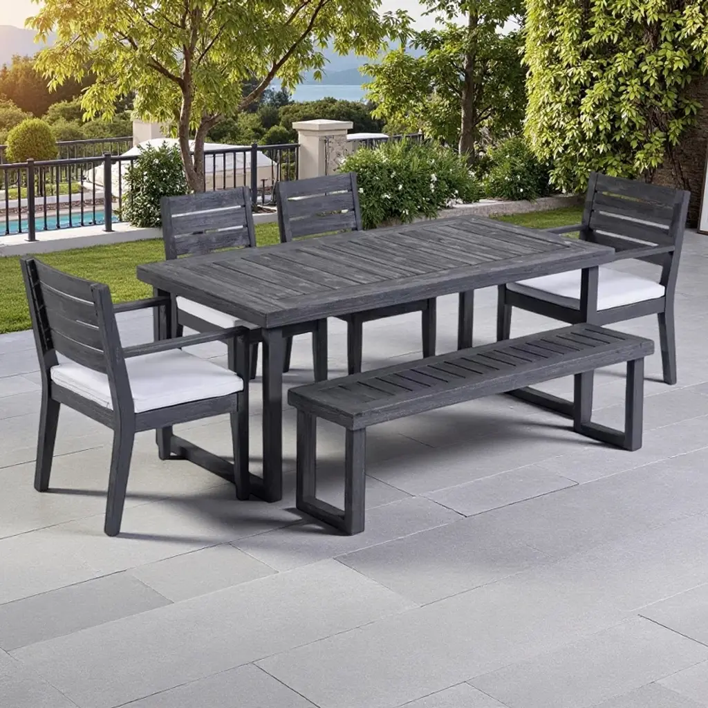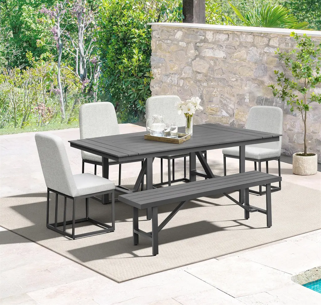 Yarmouth Outdoor Dining Table, 4 Upholstered Chairs And Bench