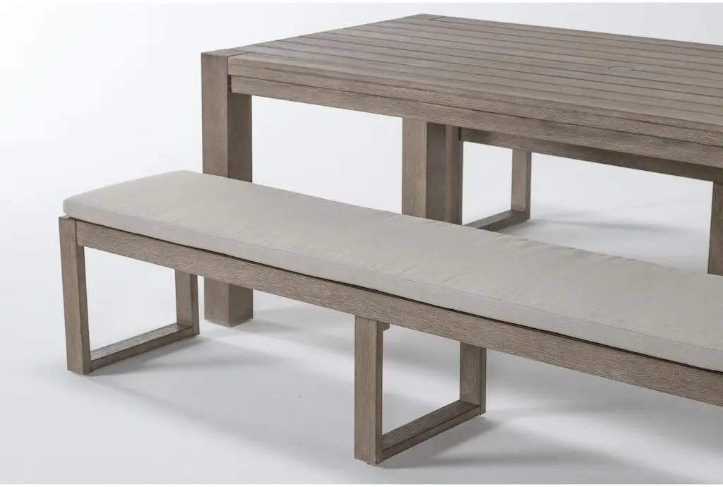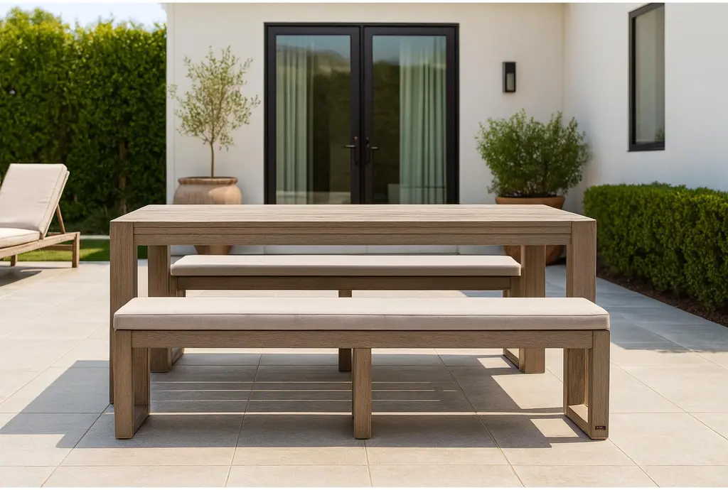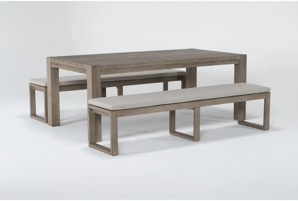 Malaga Grey Ii Outdoor Wood Rectangle 80" Dining Table | 2 Benches Set For 4 | Eucalyptus | Set For 6