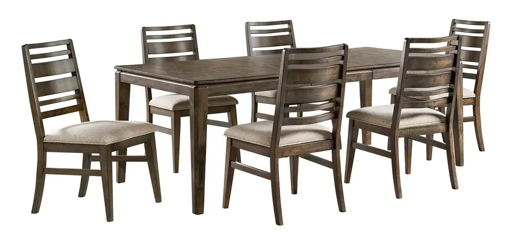 Feast your eyes on how beautiful simplicity can be. The Coviar dining room table set’s wonderfully clean-lined profile is dramatically enriched with a complex, burnished finish loaded with tonal variation and rustically refined character. Upholstered ladderback chairs are such a classic, while comfortably cushioned bench brings a modern sensibility to the table. Weight 174.000 lbs. (78.3kgs.)