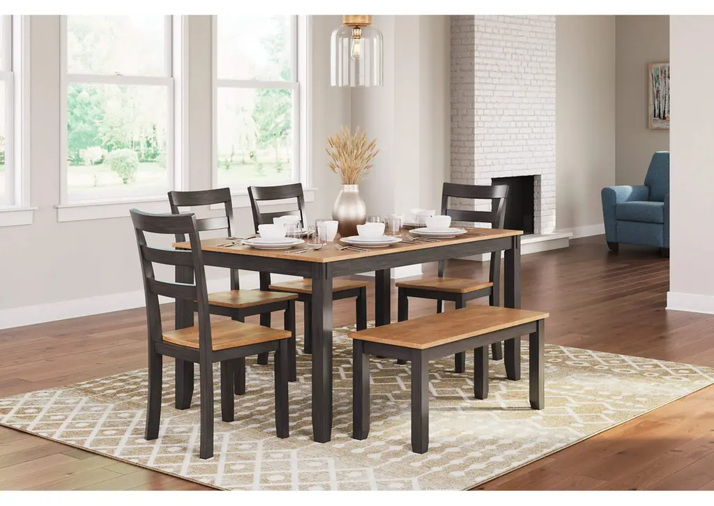 Gesthaven Dining Table With 4 Chairs And Bench (Set Of 6)