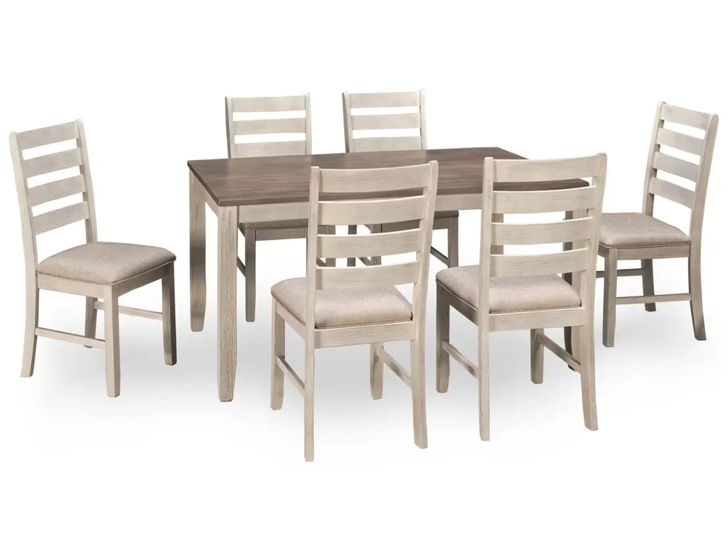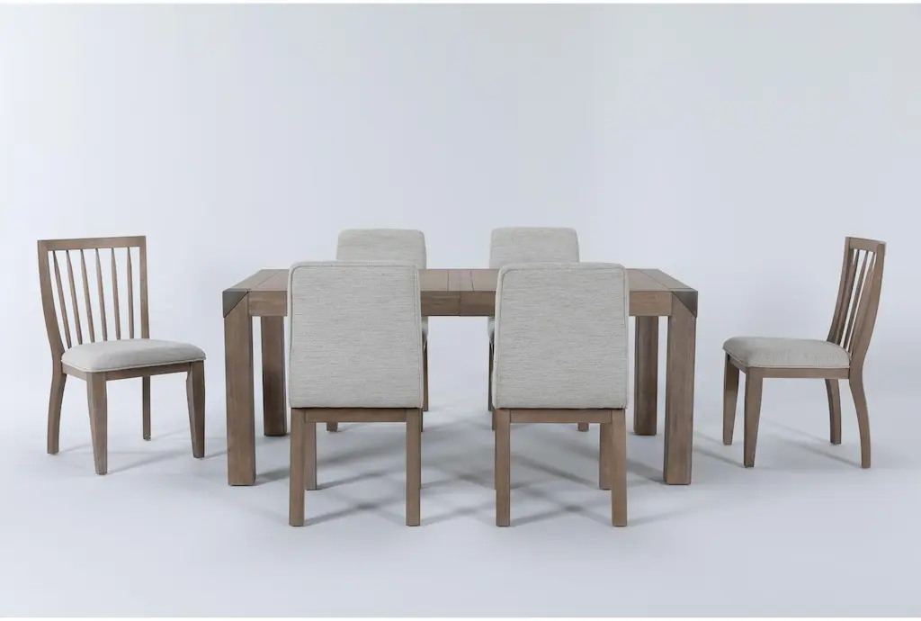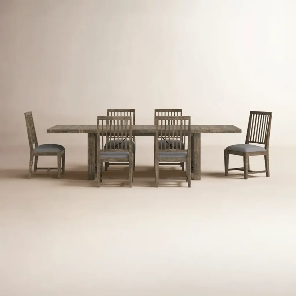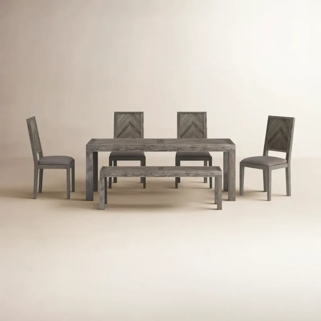 Enhance your dining experience with the Luis Natural Rectangular 72-90" Extendable Dining Table with Bench 3 Wood Back + 2 Upholstered Chair Set for 8. This rustic dining set, made from acacia veneer and solids, combines natural beauty with functionality. The extendable table ensures ample space for gatherings, while the included bench and chairs provide comfortable seating for eight.