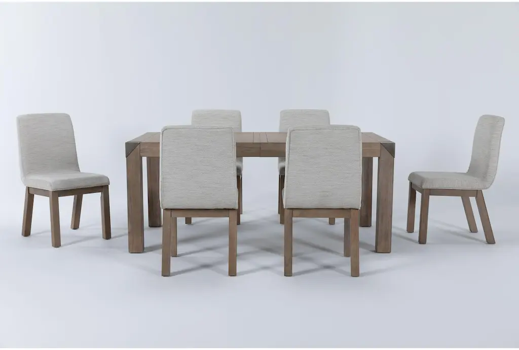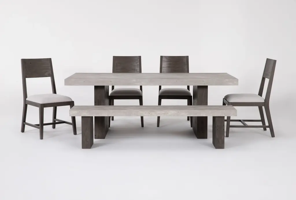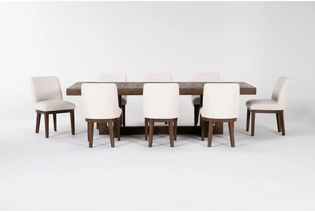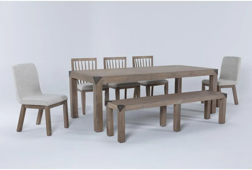 Luis Natural Rectangular 72-90" Extendable Dining Table With Bench 3 Wood Back + 2 Upholstered Chair Set For 8 | Acacia