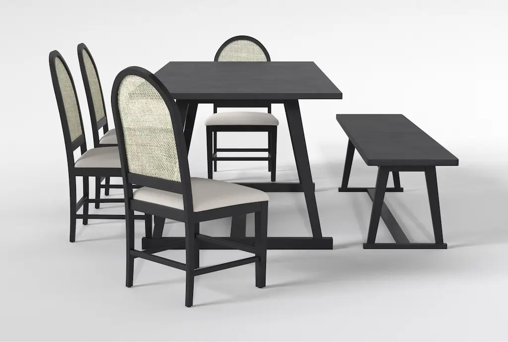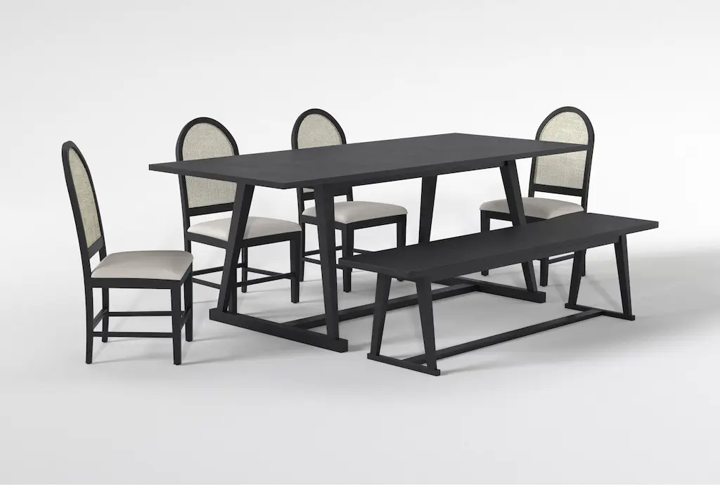 Create memories with the Phoenix Dining collection. Featuring a clean, modern design and matte black finish, the pieces will add sophistication to your space and blend seamlessly with other items in your home. Mix in seating or pair with the matching bench.