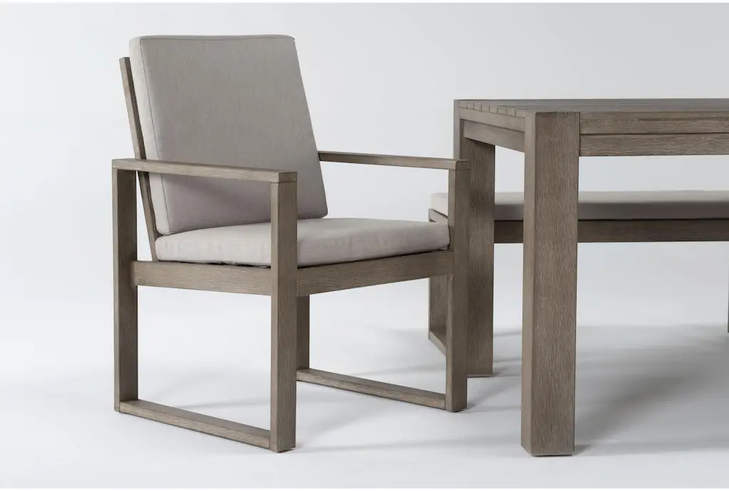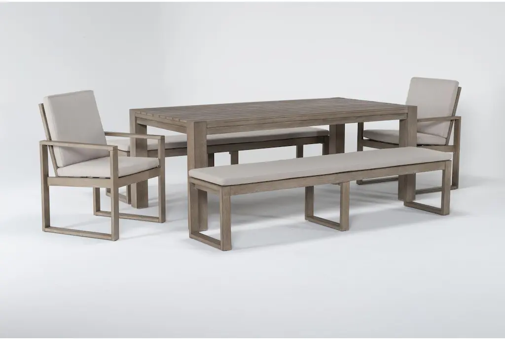 Malaga Grey Ii Outdoor Wood Rectangle Metal 80" Dining Table | Armchairs | 2 Benches Set For 6 | Eucalyptus