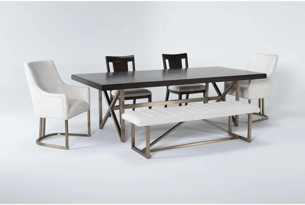 Bring a love of old Art Deco buildings from downtown L.A. to your home with our Palladium collection of dining room furniture. These designs incorporate features that add dimension and distinction, including a reverse diamond veneer pattern, clean, architectural lines and channel tufting. Brass metal details finish off pieces fit for a glamorous Hollywood movie set.