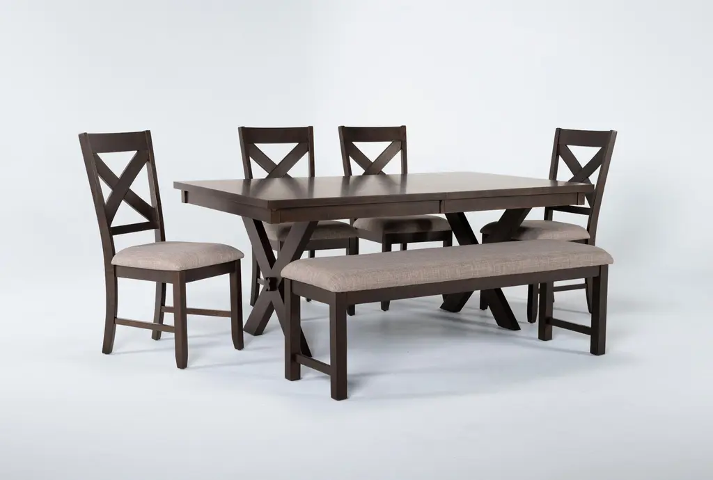 Create a gathering place in your space with our inviting Pollie dining collection. The designs welcome you to enjoy the inherent warmth that comes with their subtle farmhouse charm. From the cross-legged extension kitchen table with 18” leaf, to the x-back chair and spacious bench with upholstered seating, each piece is crafted to make you feel like you belong. A combination of rubberwood, engineered wood and cherry veneer ensures lasting durability, quality and character.