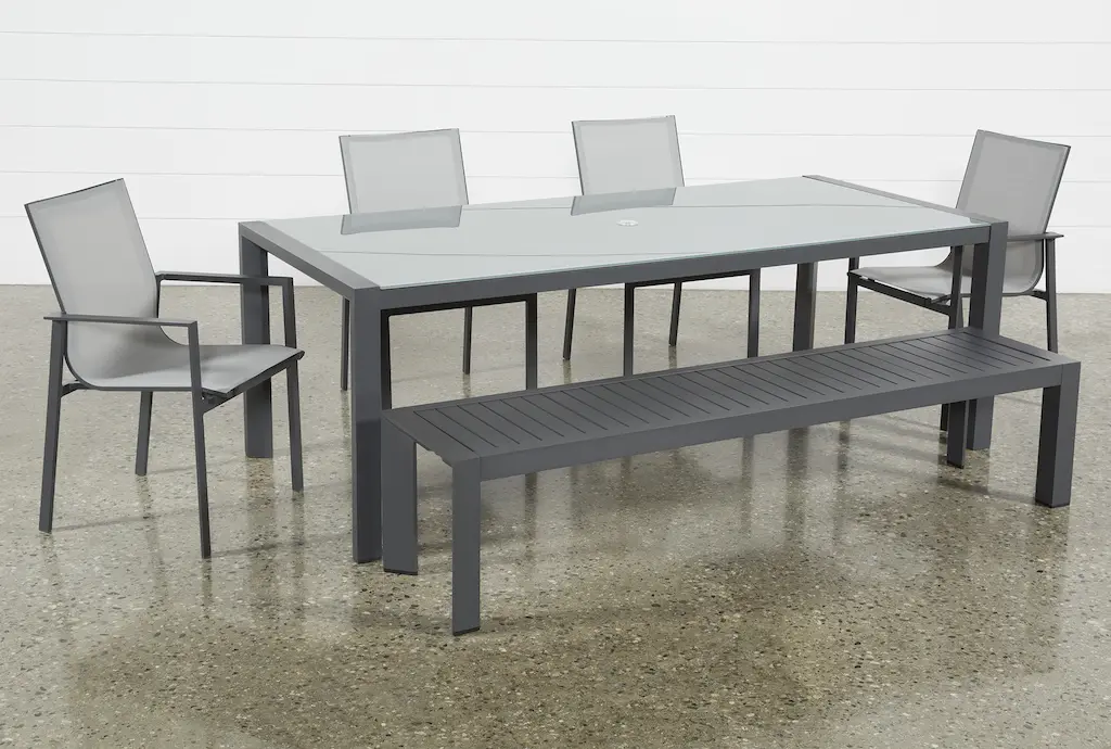 Ravelo 87" Outdoor Dining Table With Bench & Sling Back Chairs Set For 6