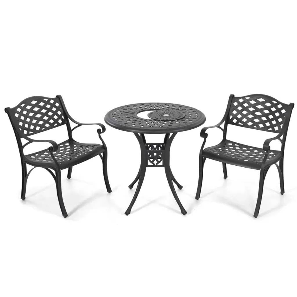 7Pc Outdoor Dining Set With 59" Ornate Mesh Aluminum Round Table & Modern Chairs - Black - Oakland Living: Uv-resistant, Lazy Susan
