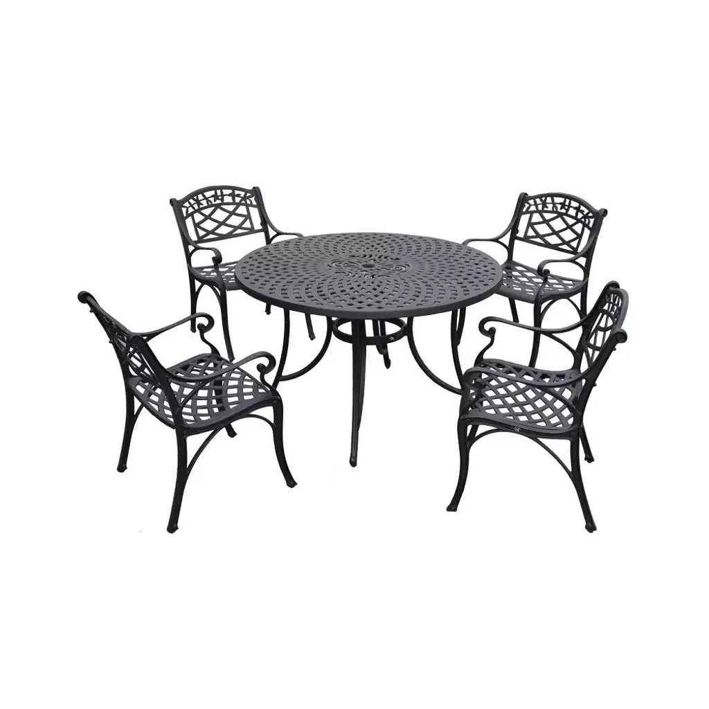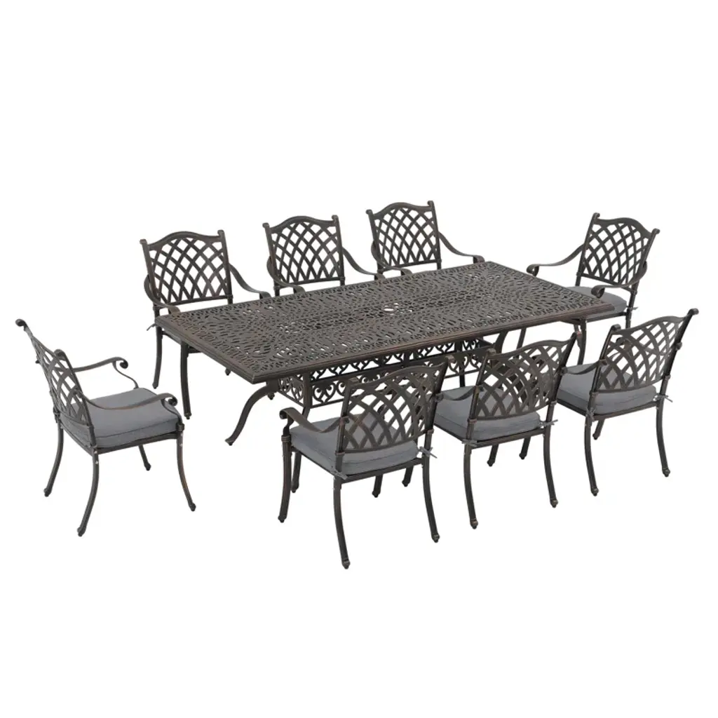Constructed out of aluminum with a powder coated UV resistant finish this Modern Ornate Outdoor Mesh Aluminum 68-in Black Rectangular Patio Dining Set with Six Chairs is designed to last a very long time. This patio dining set is a great fit for any patio, porch, deck, balcony or backyard. It comes with foot glides to protect any surface you place it on. The set weight is perfect allowing it to be easily moved but not able to be blown away by the wind. Use it for indoor or outdoor and commercial or residential applications.