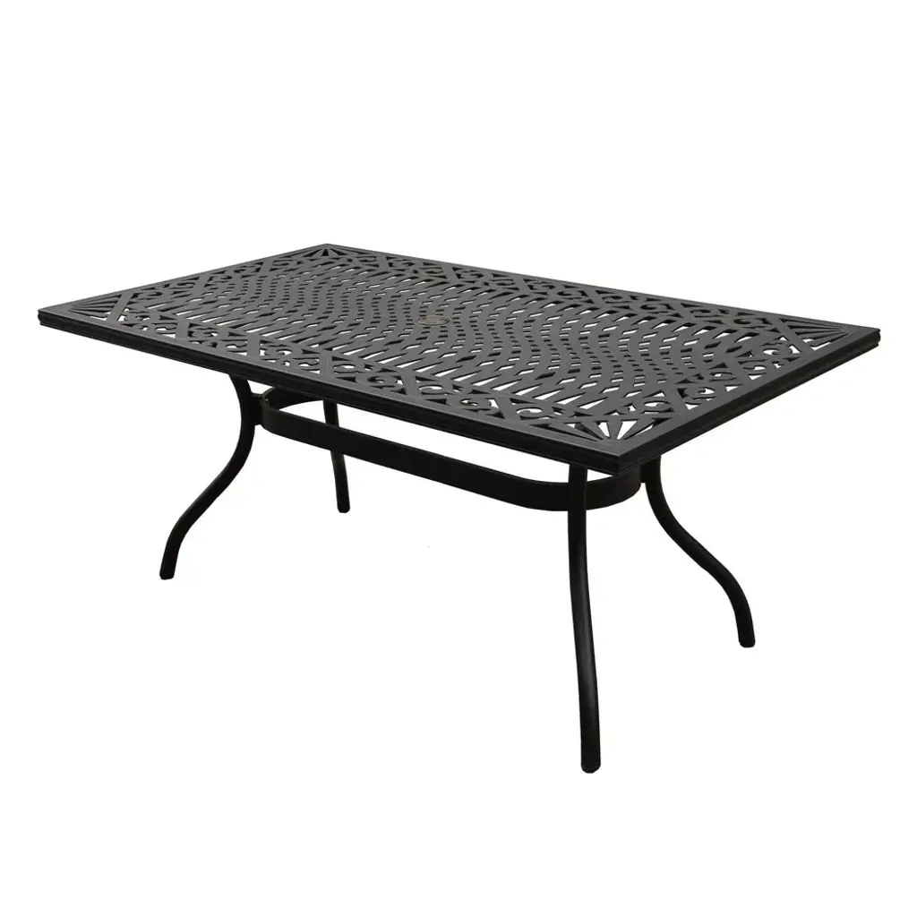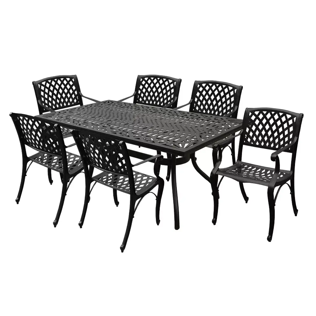 7Pc Patio Dining Set With 68" Modern Ornate Outdoor Mesh Aluminum Rectangular Table & Luxury Chairs - Black - Oakland Living