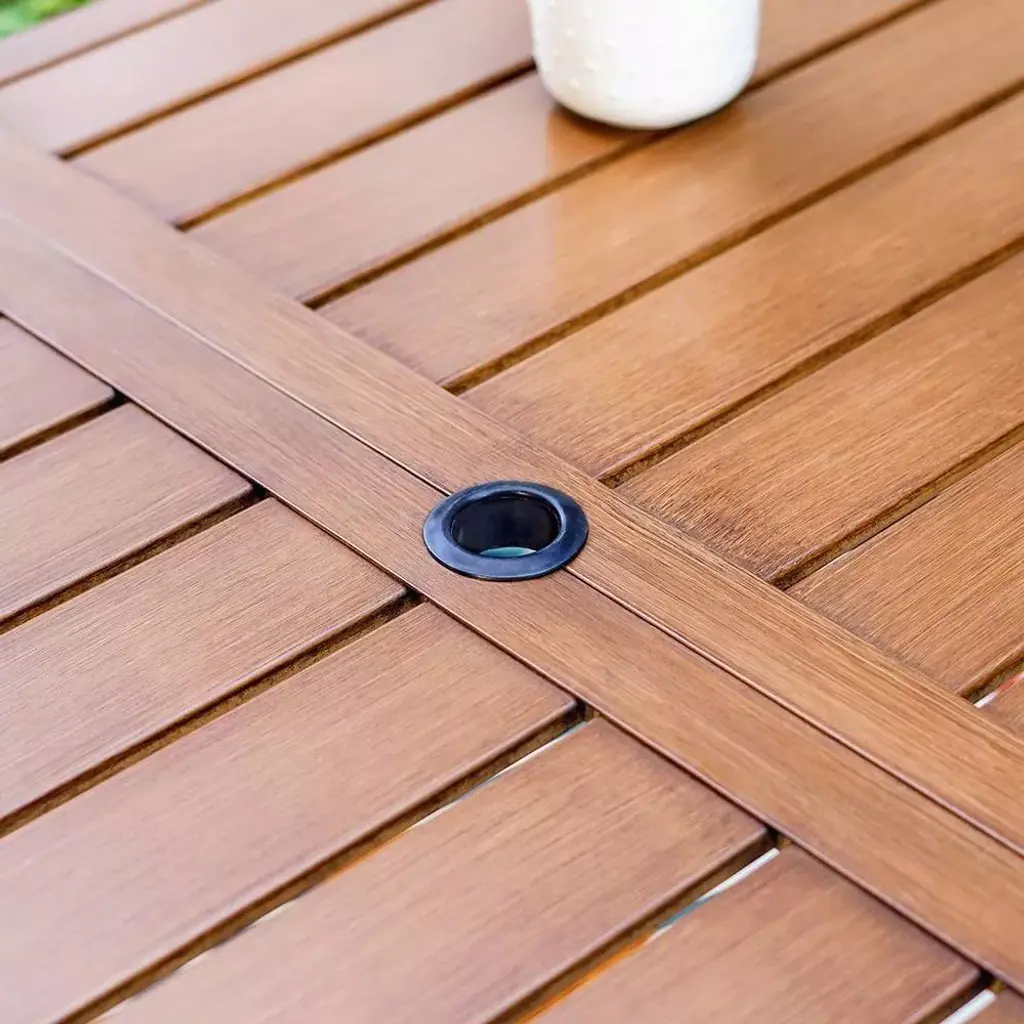7Pc Patio Dining Set With Wood Grain Tabletop & Metal Padded Arm Chairs - Captiva Designs
