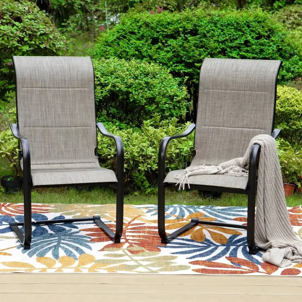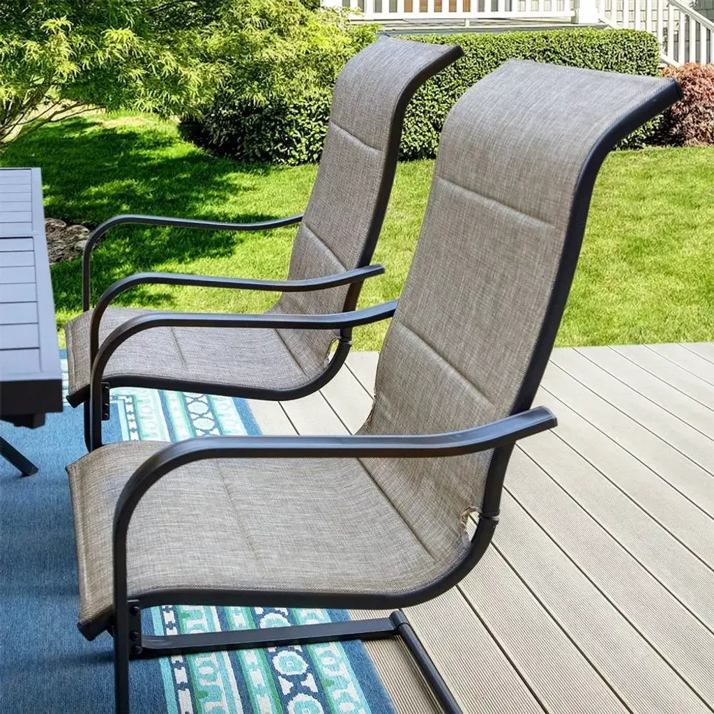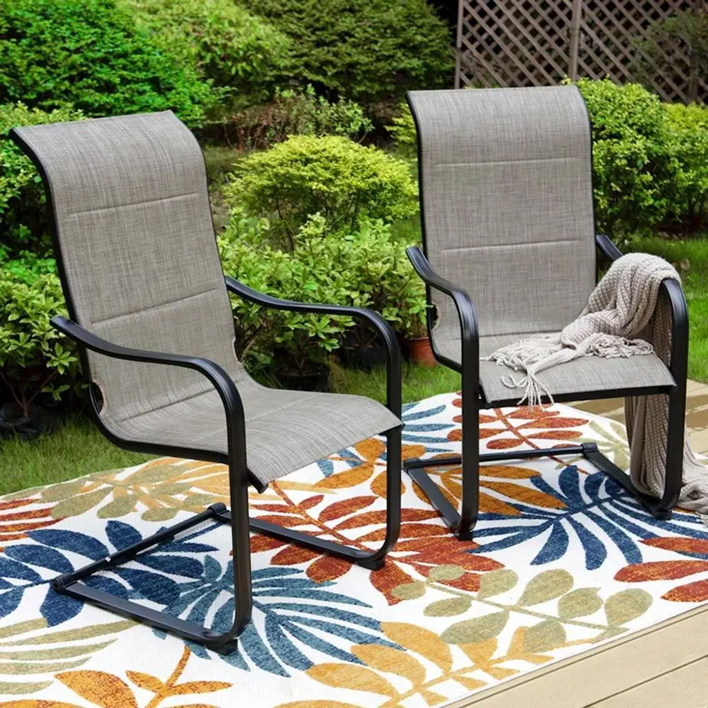 [CAPTIVA DESIGNS] Upgrade your outdoor dining with our 7pc Patio Set.Built with a premium metal frame and a resilient powder-coated steel finish, this set is rust, weather, and fade-resistant, ensuring longevity. The table boasts a slat tabletop and a convenient umbrella hole, providing both style and shade options. The chairs offer superior comfort with breathable sling fabric on the seat and back, along with c-spring legs that provide a gentle rocking sensation.FEATURESPowder-Coated Steel Frame - For added protection and an attractive finish.Slat Tabletop - Features a slatted design that's easy to clean and maintain.1.57" Umbrella Hole - Designed for easy shading on sunny days.C-Spring Legs - Chairs equipped with slight rocking motion for added comfort.Breathable Sling Fabric - Provides comfortable seating for both the seat and back.Padded Texilene Chair - Ensures a cozy and comfy sitting experience.SPECIFICATIONDining Table: 60"L x 38"W x 28"H, Floor to apron height: 26.6"Chair Dimensions: 42"H x 23.2"W x 22"D, 23" (seat back height)Seat Dimensions: 19.6"W x 18.8"D, 16.5"[floor to seat top]Package Includes1 x Dining Table (1 box)6 x Sling Chairs (3 boxes)Instruction Manuals (come with each box)(Decorations on the table are not included)Tips: Allow all the holes in the section to line up correctly and then tighten the screws. Assembly: 30 minutes to set up the table and about 60 minutes to put the chairs together.