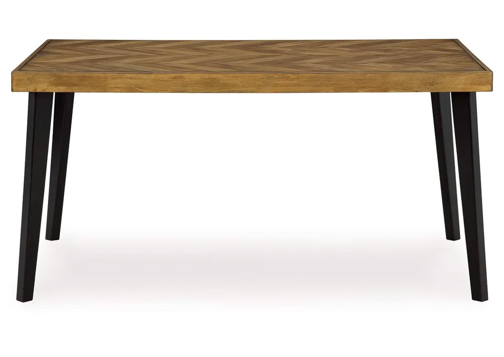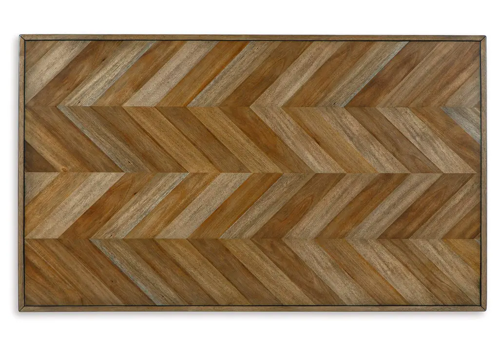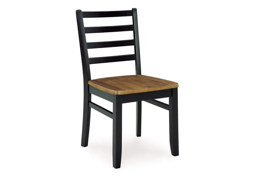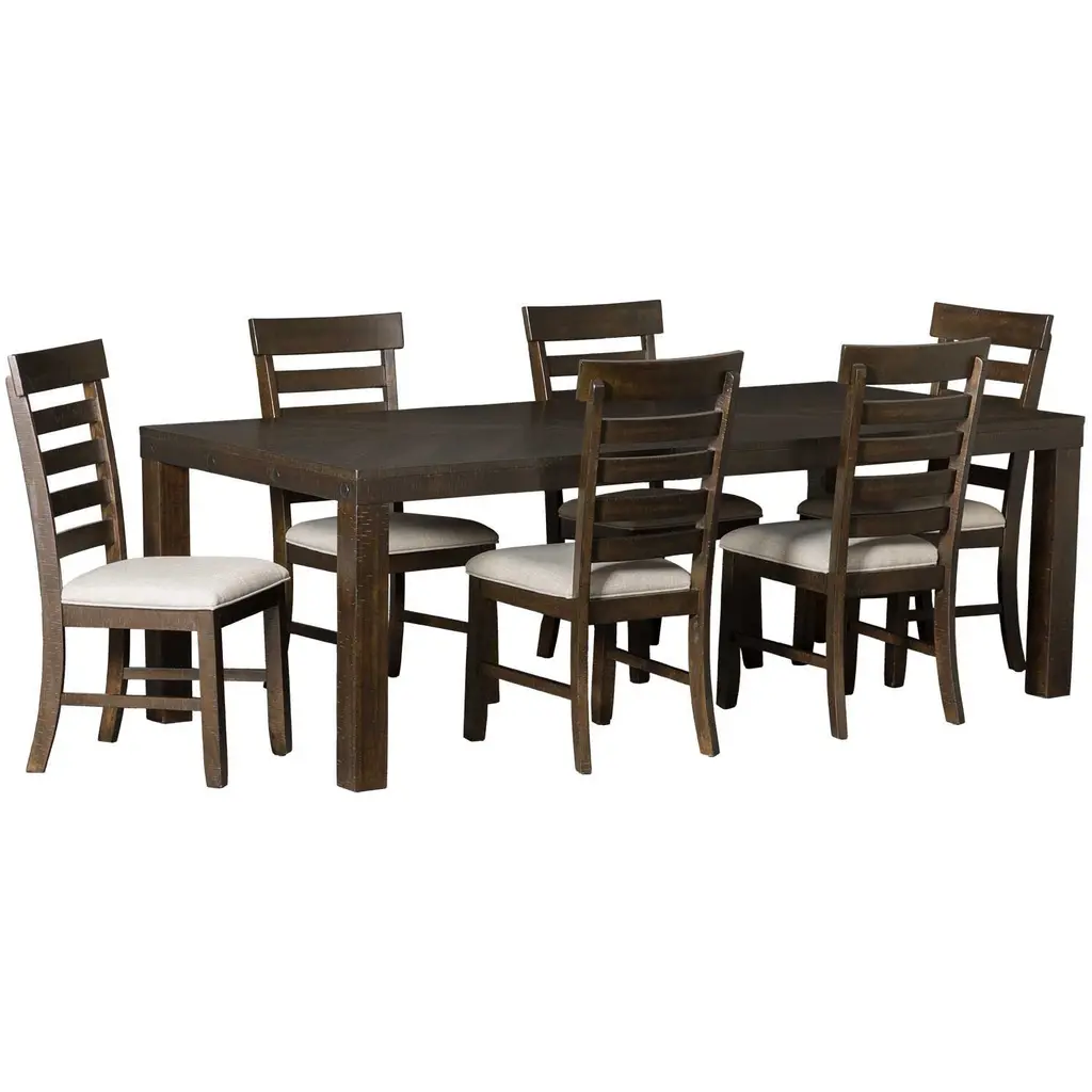 Transform your dining area into a delightful rustic retreat with the Blondon seven-piece table set. A two-tone finish adds a layer of charm, creating a visually appealing look that catches the eye. The tabletop's inlay chevron pattern adds a unique and stylish touch, while ladderback chairs complement the overall design. Weight 189.000 lbs. (85.05kgs.)